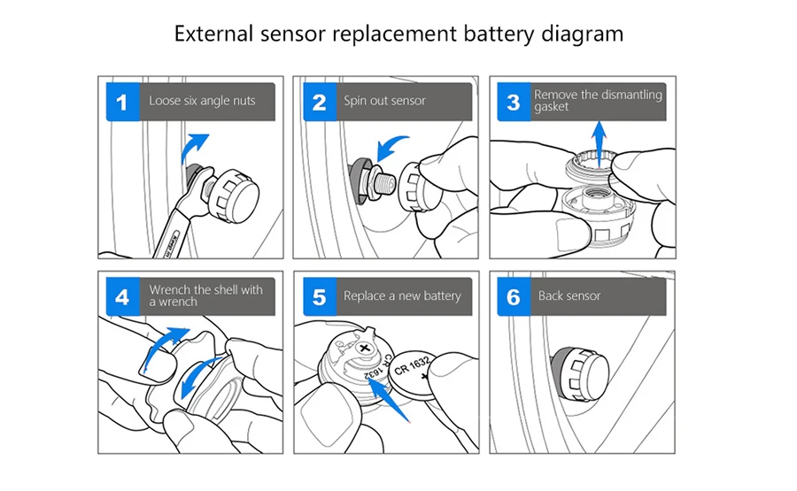 1. Снимите демонтажную прокладку; 2. Гаечный ключ оболочки с помощью гаечного ключа; 3. Извлеките аккумулятор; 4. Замените новый аккумулятор.