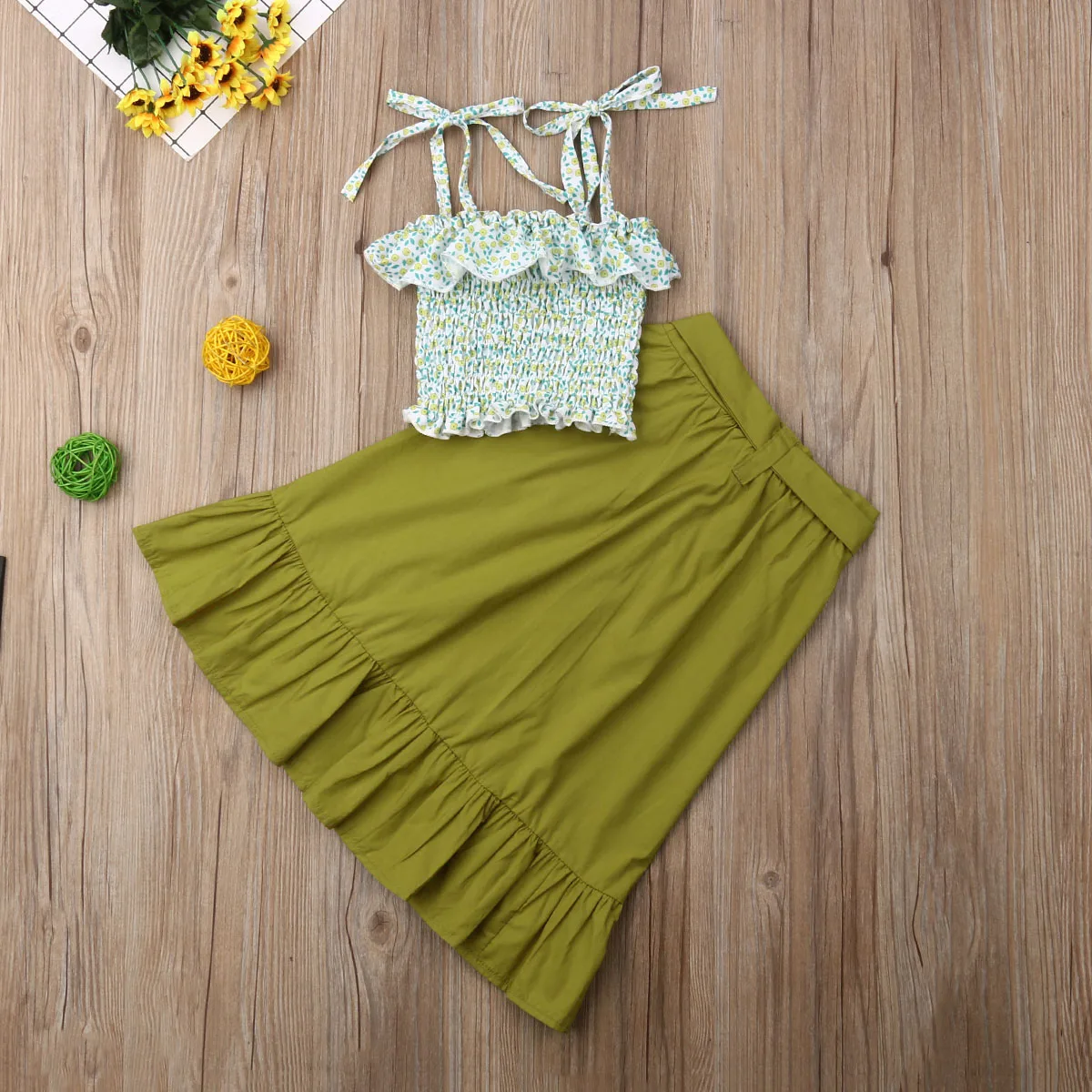 Новейшая модная юбка с цветочным рисунком для маленьких девочек! Высокое качество и абсолютно новый 100% Основной цвет: как на картинке Новинка в моде Материал:Смесь хлопка Пожалуйста, перед покупкой ознакомьтесь с фактическим ростом вашего ребенка и таблицей размеров. Спасибо.В комплект входит:1 укороченный топ +1xЮбка Таблица размеров: