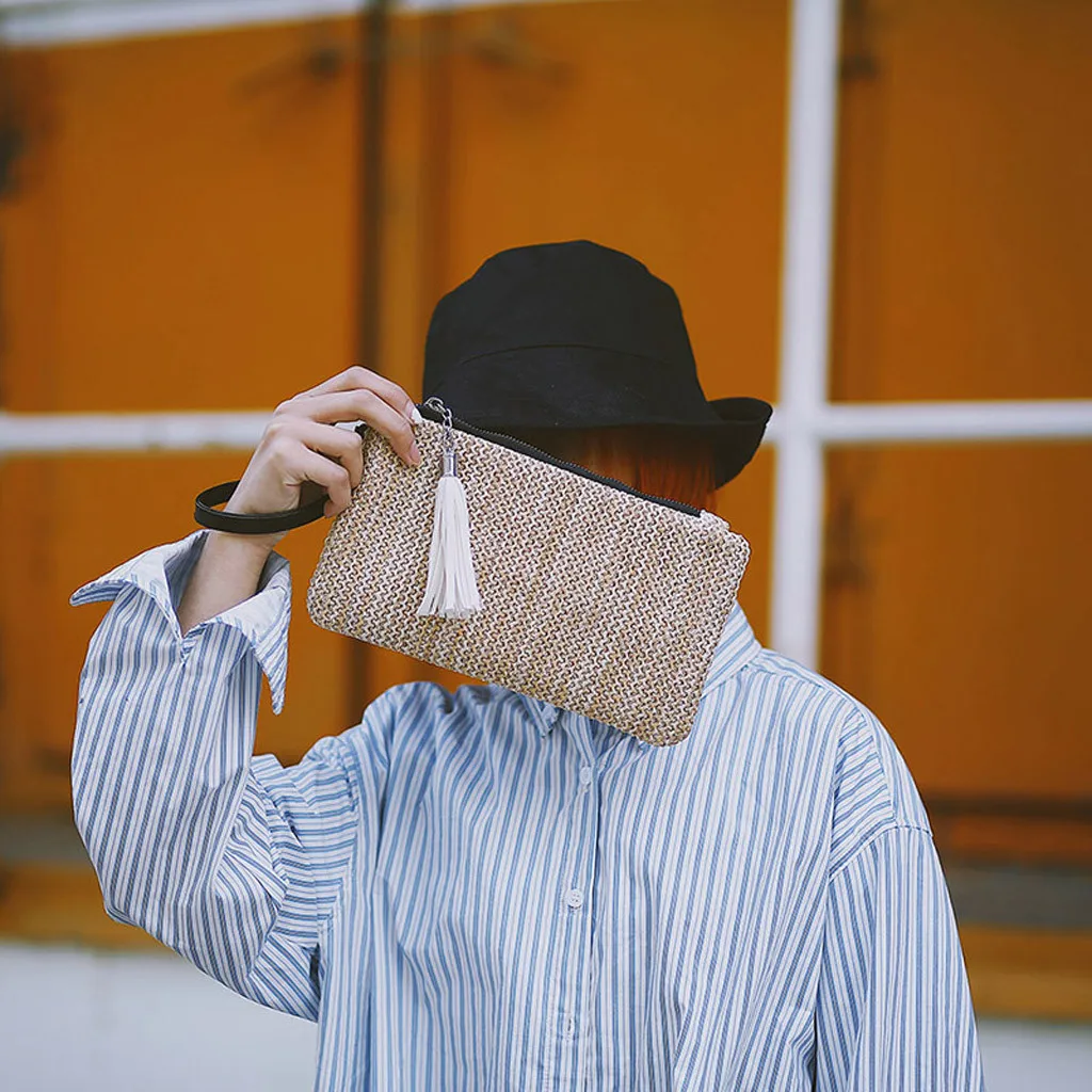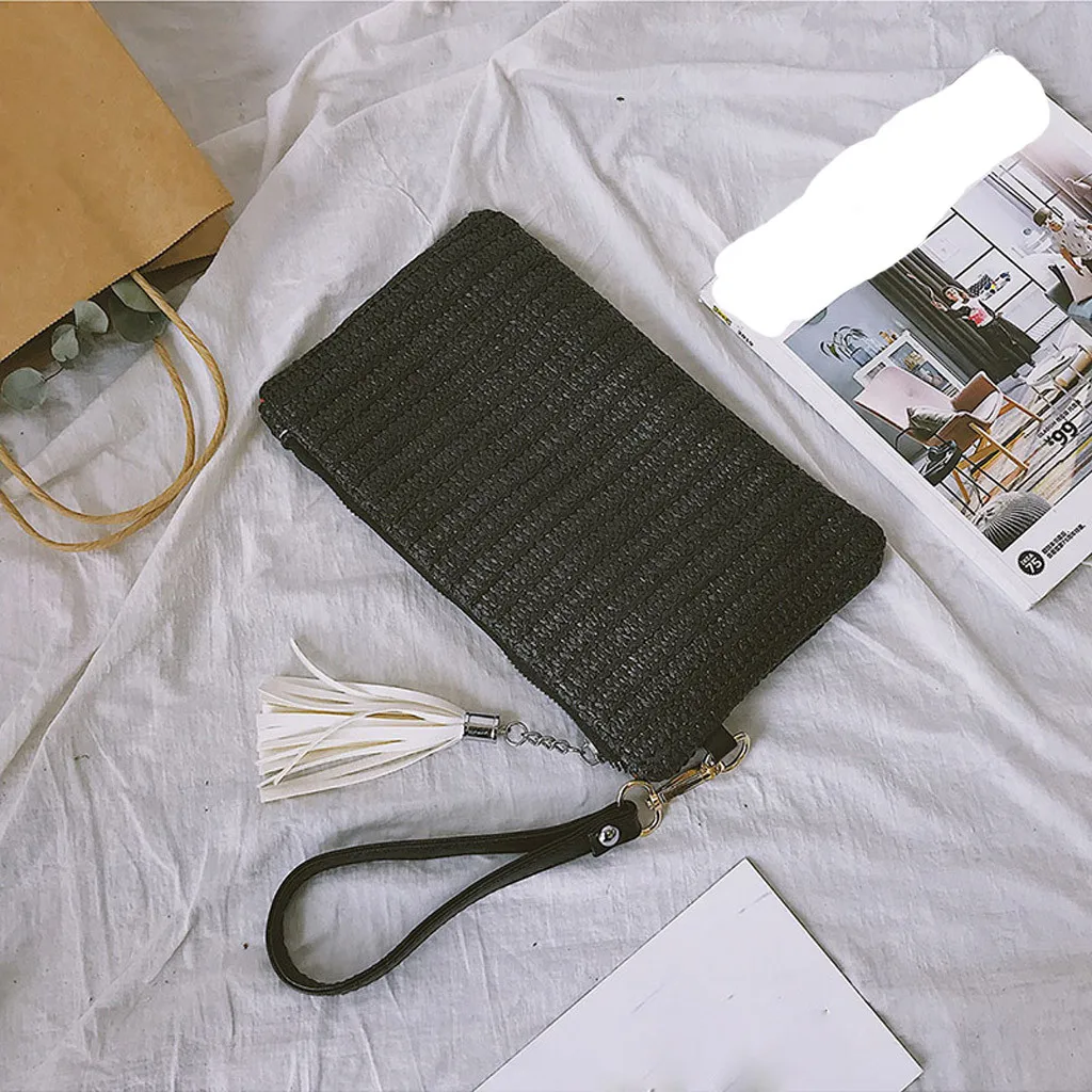 Модный женский тренд, тканая кисточка, портативный клатч на молнии, мобильный телефон, сумка