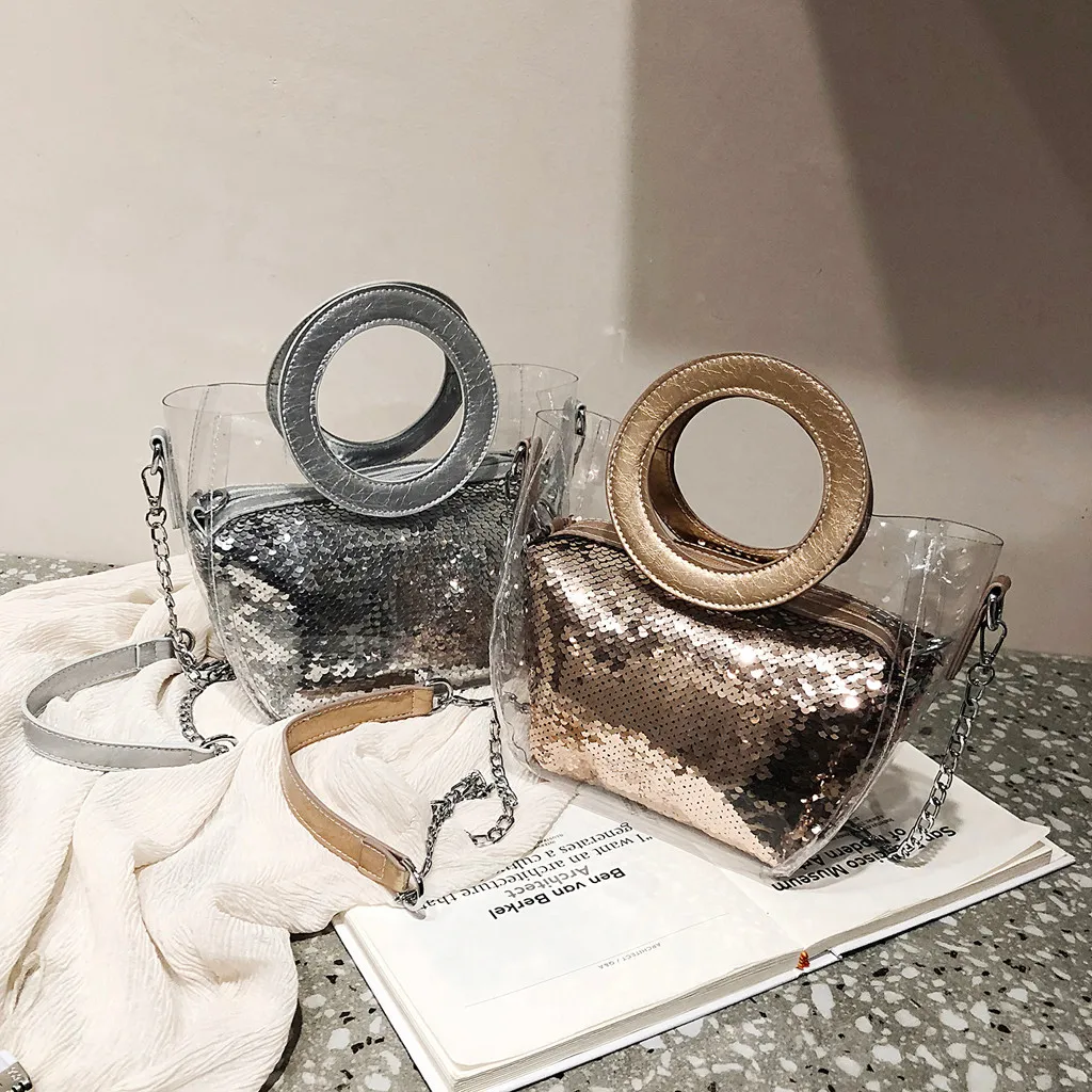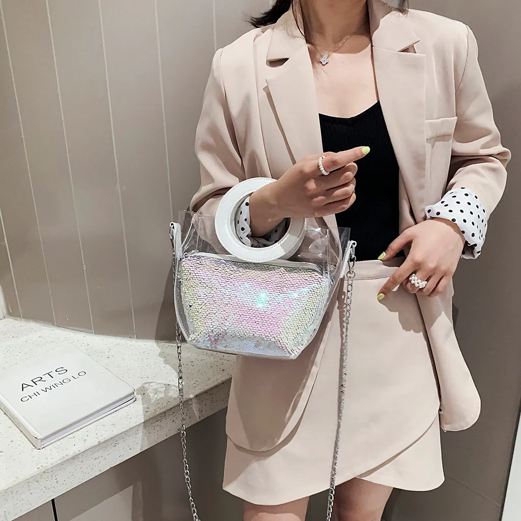 Модная женская кожаная сумка через плечо с блестками, водонепроницаемая пляжная сумка-мессенджер