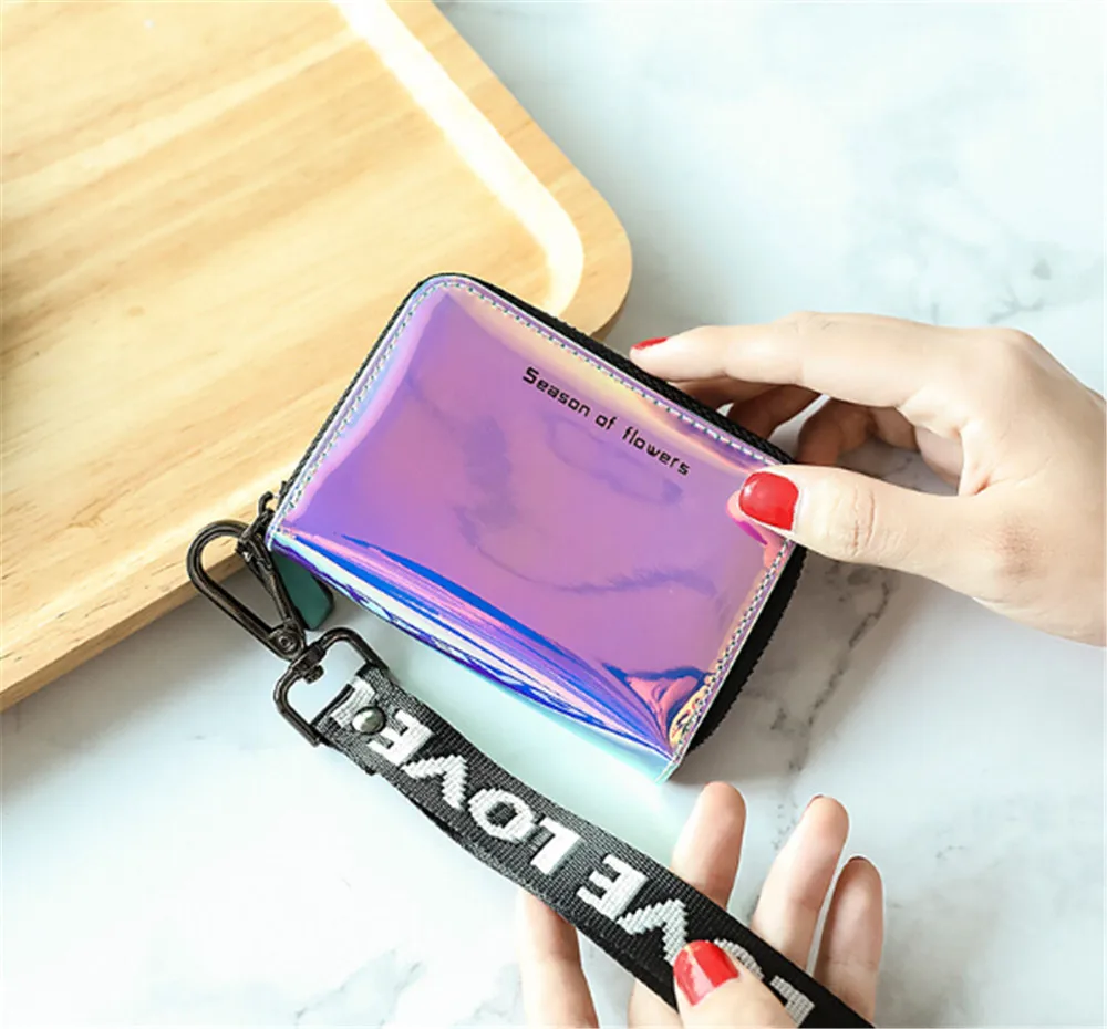 Модный новый женский кошелек для карт, лазерная подвеска на шею, сумка для карт, женские сумки, чехол на молнии, короткий кошелек, тонкие карты