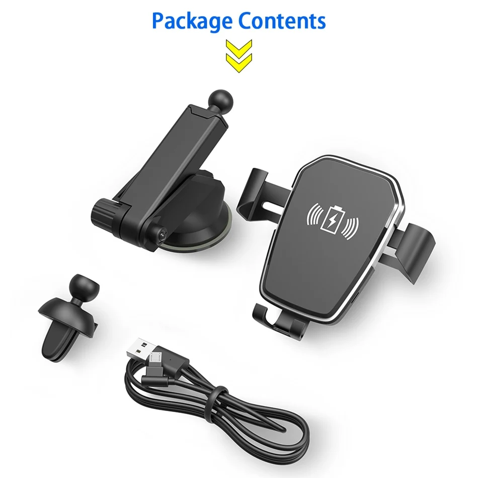 Посылка: держатель беспроводного зарядного устройства + ручная книга + зарядный кабель + зажим для вентиляционного отверстия