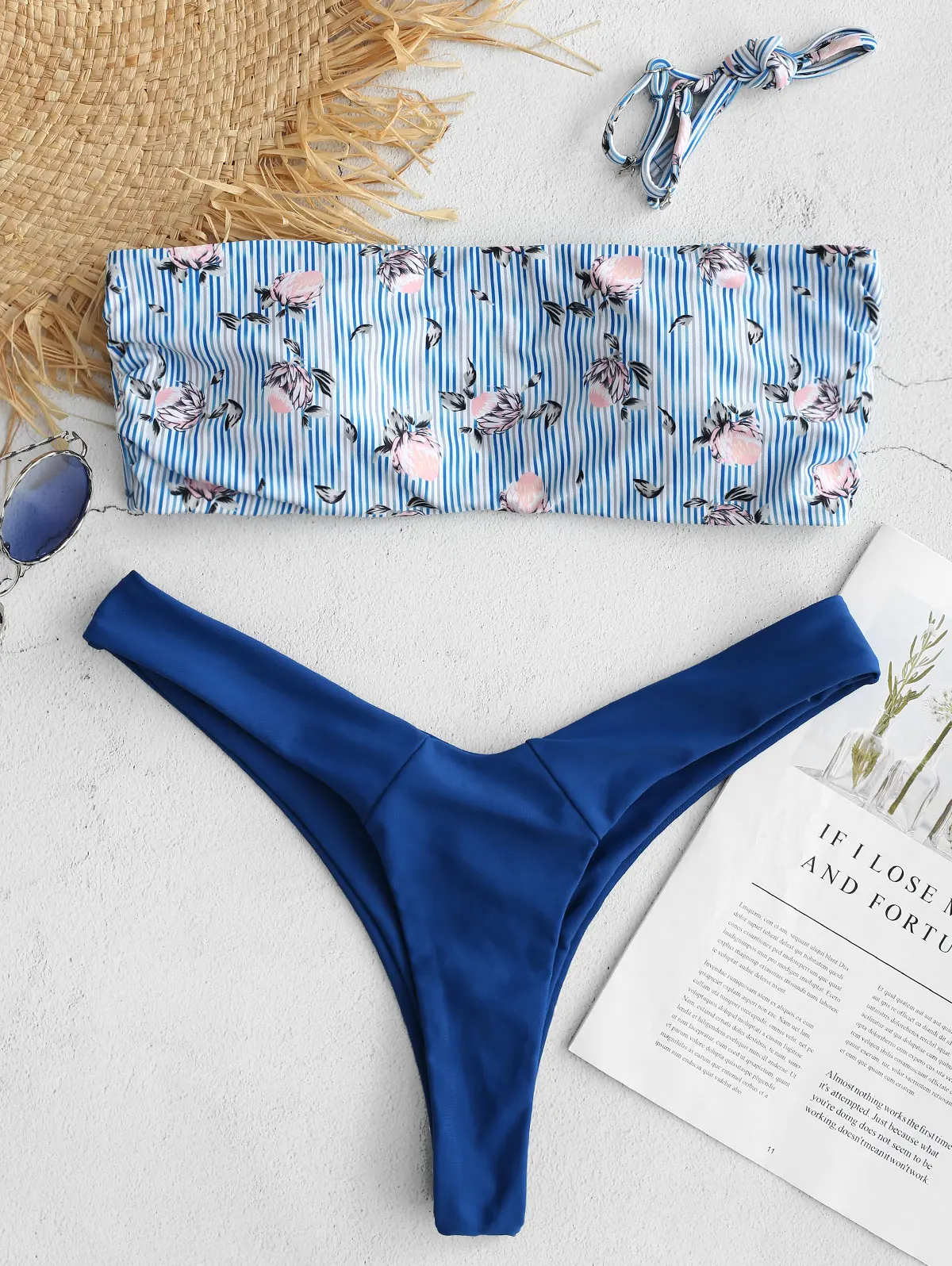 Женский купальник бикини в стиле пэчворк сексуальный с цветочным принтом низкая