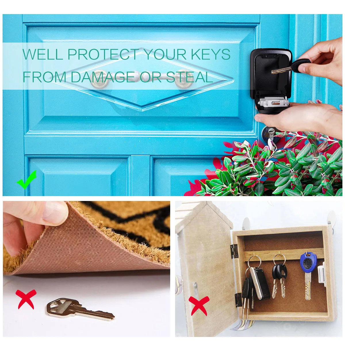 【Прочная и прочная конструкция и высокая безопасность 】 изготовлен из высококачественного нержавеющего цинкового сплава и сверхпрочной стали, которая является прочной, некоррозионной и weather-resistant.This продуктом, это Регулируемая блокировка комбинаций с 4 циферблатами. Он может предложить 10000 комбинаций. 【Большое безопасное пространство вмещает до 5 клавиш. Вы можете хранить ключи дома, офисные ключи или другие ключи внутри. С раздвижной крышкой затвора для защиты циферблатов от плохой погоды, износостойкие. 【Простая операция 】 с предварительно просверленными отверстиями, 4 винта и 4 нейлоновых расширяющихся настенных якоря, легко крепятся на любую твердую поверхность. Идеально подходит для детей, пожилых родителей или тех, кто забыл принести запасные ключи от дома. 【Стильный и полированный дизайн 】 коробка с замком для ключей окрашена краской с защитой окружающей среды, практически не теряет цвет. Настенная конструкция обеспечивает фиксированное и безопасное место для хранения и скрытия ключей.