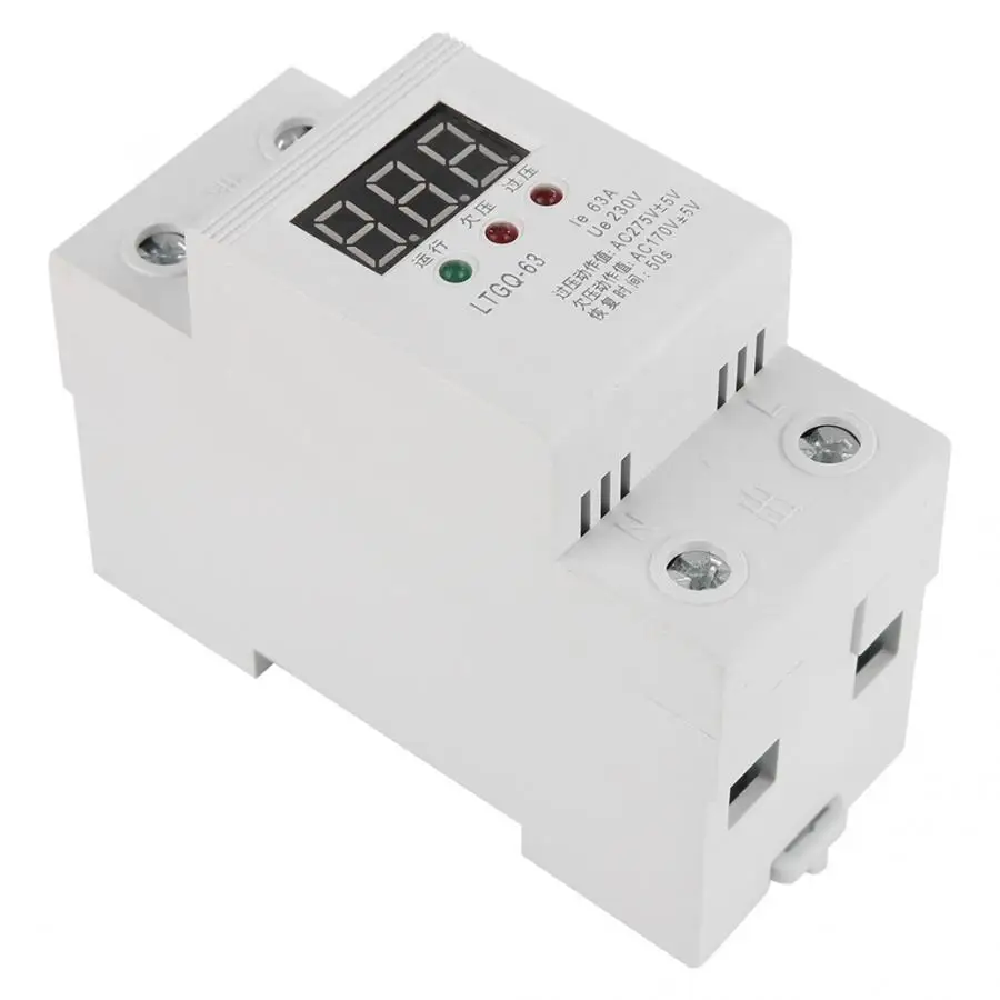 230 В AC автоматическое повторное подключение напряжения протектор реле пониженного напряжения реле напряжения 2P/63A Цифровое реле напряжения