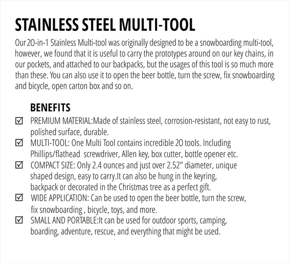 Область применения: на открытом воздухе, подарок, носить с собой, EDC.