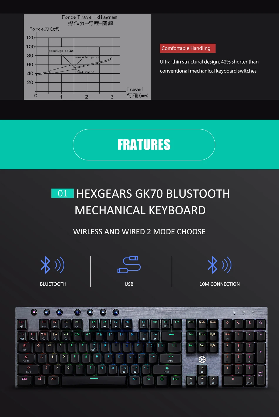 ● Механическая клавиатура Bluetooth ● До 4 устройств ● Bluetooth и проводной ● Переключатель kailh CHOC ● Полностью RGB