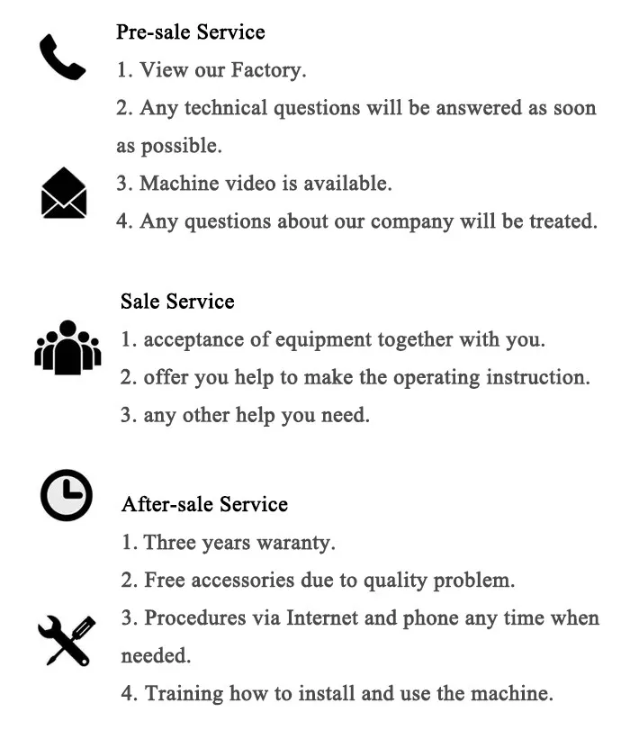 A:При необходимости мы предлагаем услуги от двери до двери! Мы можем отправить инженеров на ваш завод для сборки, регулировки и обучения.