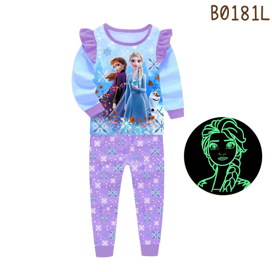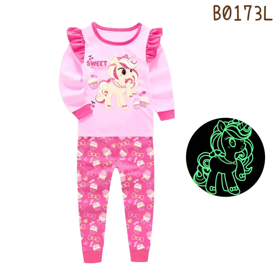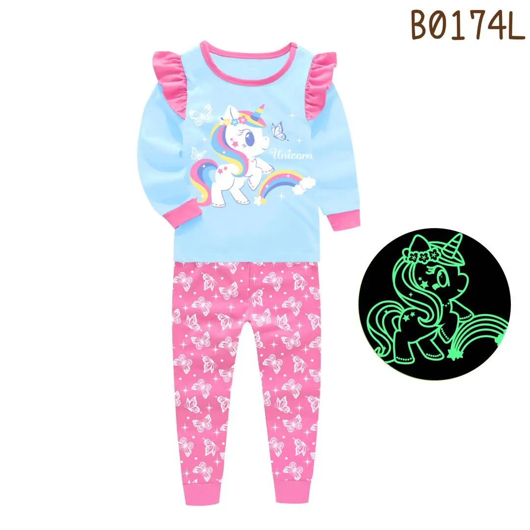 Светящиеся в темноте пижамы для девочек, милые хлопковые детские пижамы с героями мультфильмов, мягкая теплая детская пижама, Семейные пижамы, домашняя одежда