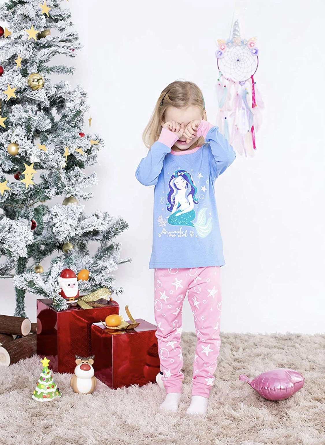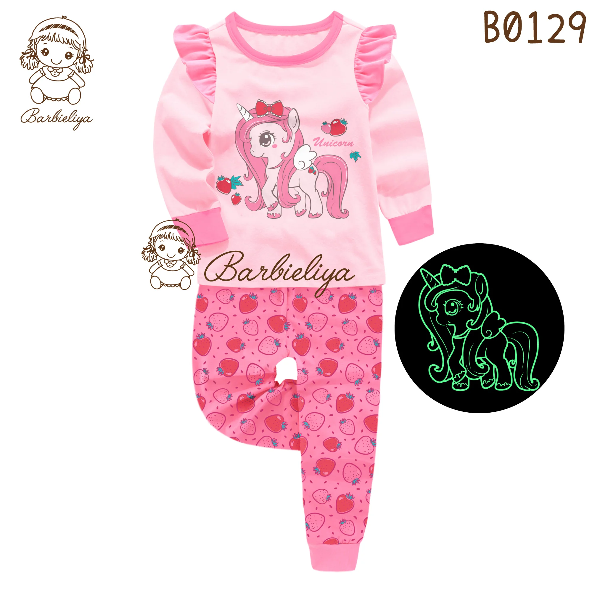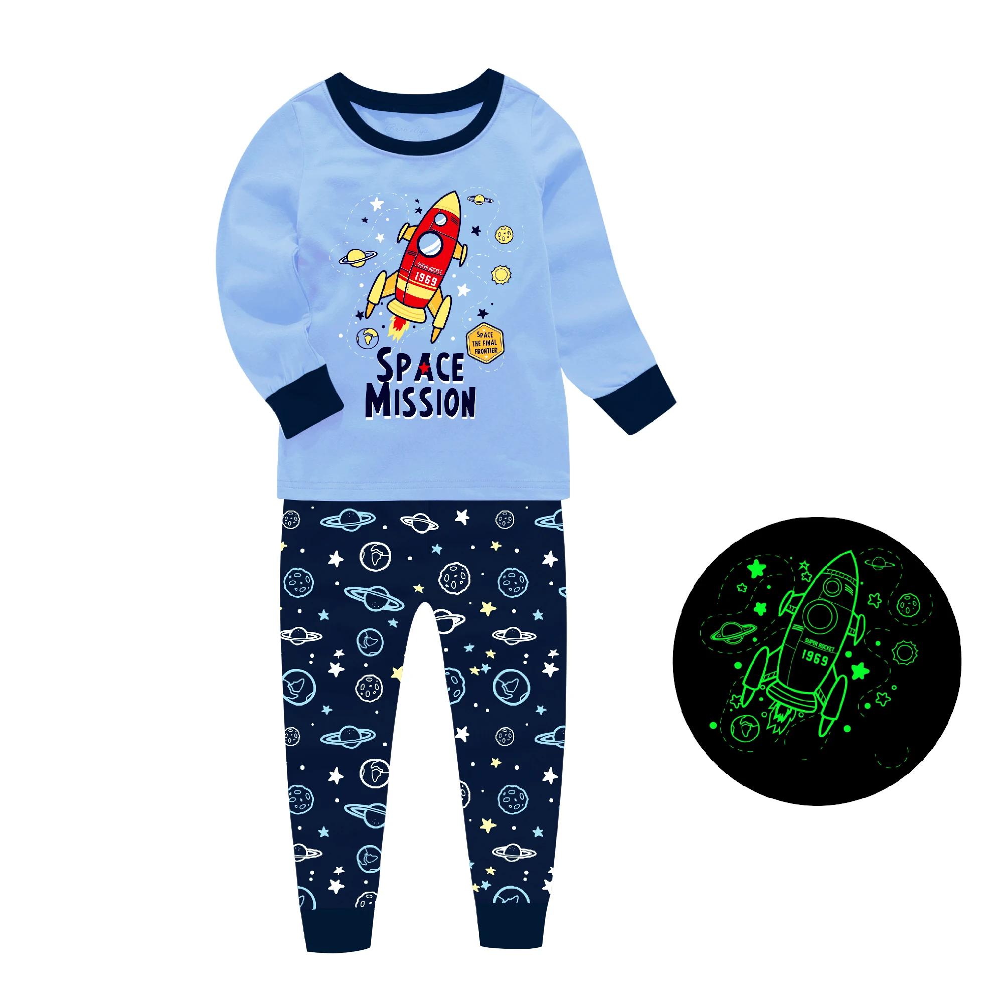 Светящиеся в темноте пижамы для девочек, милые хлопковые детские пижамы с героями мультфильмов, мягкая теплая детская пижама, Семейные пижамы, домашняя одежда