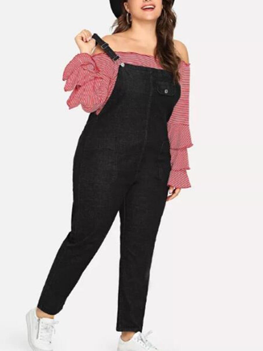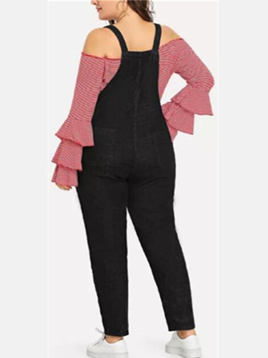 Женский Повседневный комбинезон, черный комбинезон большого размера плюс с открытой спиной, модель LJ546