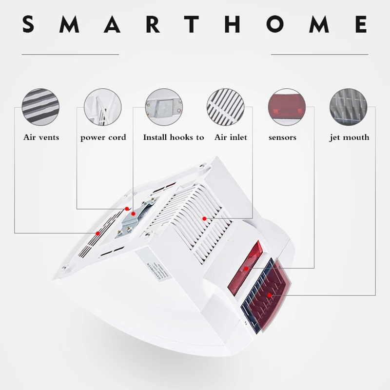 C. Built-in high temperature protection When the infrared induction is blocked for a long time or the fan fails, the protection device will automatically stop working when the built-in temperature rises.