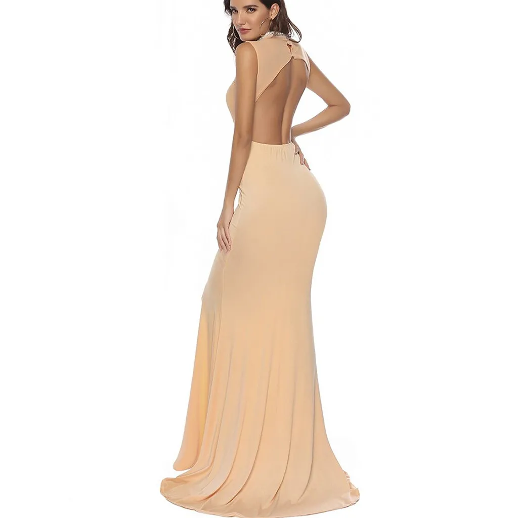 Женское длинное платье без рукавов с разрезом, имитация сверла, коктейльное платье для свадебной вечеринки
