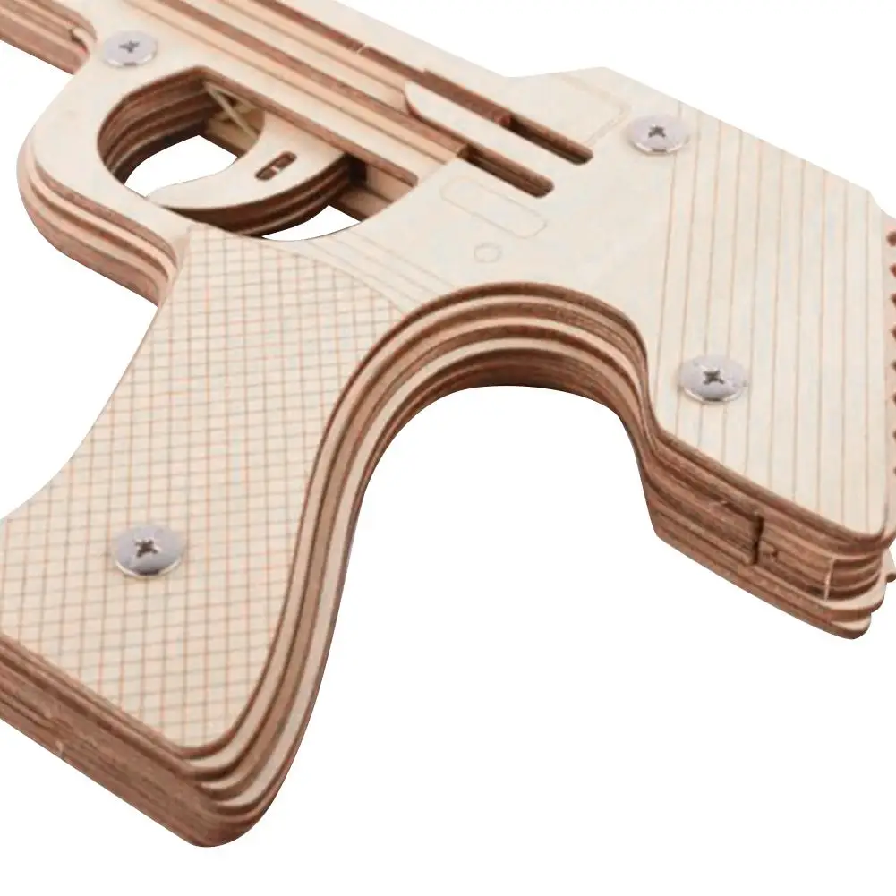 Девять burst пистолет с резиновой лентой игрушка 3D деревянная головоломка механическая модель Набор DIY строительная техника Резиновая лента пистолет игрушка