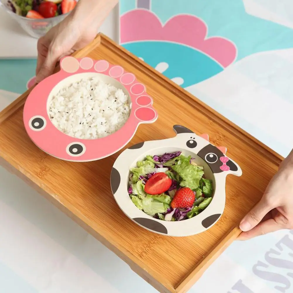 Нескользящая чаша из бамбукового волокна с изображением животных из мультфильма для маленьких детей, рисовая еда чаша для кормления, посуда