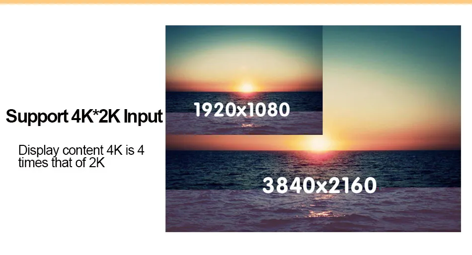 3840*2160 @ 60 Гц вход Одновременный ввод 4K * 2K 4 Windows произвольное масштабирование и роуминг • Самое большое разрешение сращивания 15360*640 @ 60 Гц, 4096*2304 @ 60 Гц, 3072*3072 @ 60 Гц, 960*8640 @ 60 Гц ► Млн пикселей может настроить разрешение Настраиваемый вход EDID Функция вращения изображения и зеркала ►Поддержка переключения времени и блокировки ► 10 режимов сохранены и 8 горячих вызовов Функция черного цвета и замораживания ● Поддержка usb-входа ● Синхронизация аудио декодирования выход Поддержка WIFI, управление RS232 Поддержка 8 стандартных карт отправки может установить 4 стандартных карты отправки