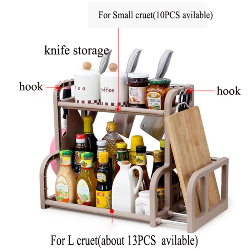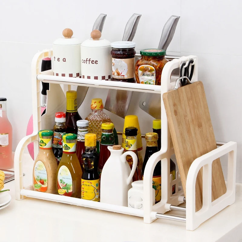 2 слоя корзина для хранения стойку Кухня полка приправа банок полки приправы пластиковые перечницы стеллаж для хранения держатель для вилки, ножа организовать