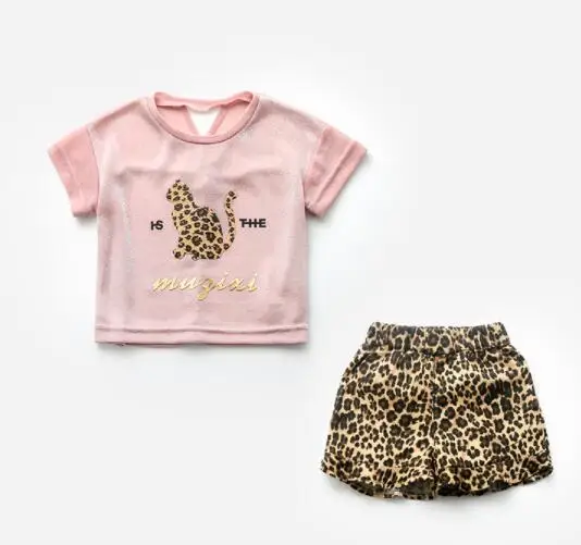 Популярный комплект из двух предметов для маленьких девочек, топ и шорты Летняя футболка с короткими рукавами + шорты с леопардовым принтом уличная одежда, пляжная одежда