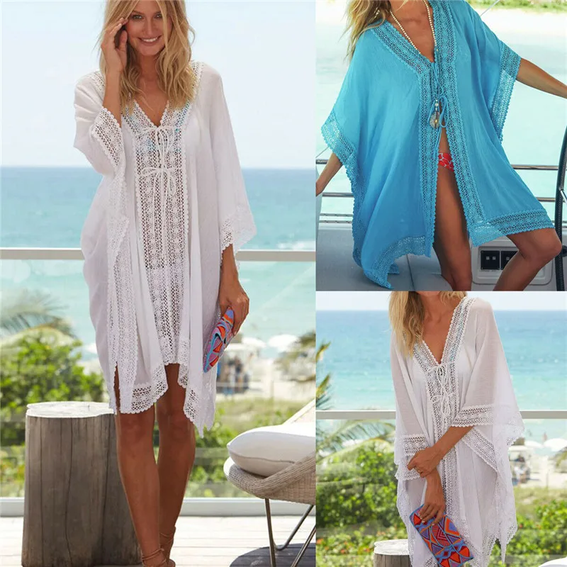 2020 летняя шифоновая Женская однотонная накидка на бикини кардиган Пляжное