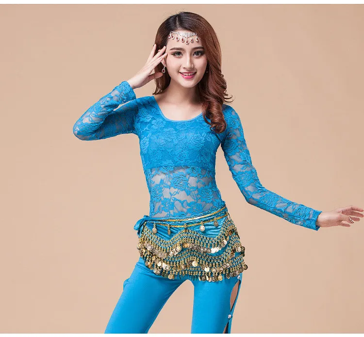 Сексуальный Кружевной топ с длинными рукавами для восточных танцев, костюмы для женщин, одежда для танца живота, индийская одежда для танца живота