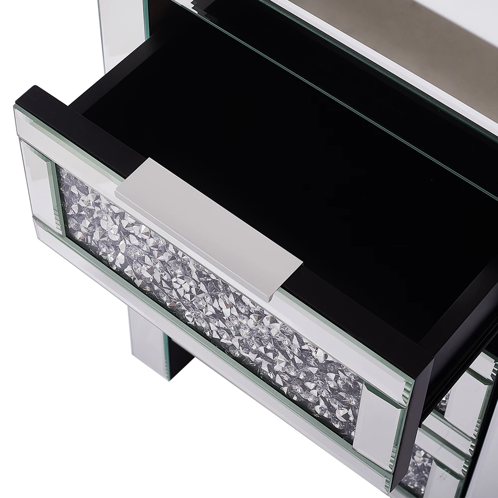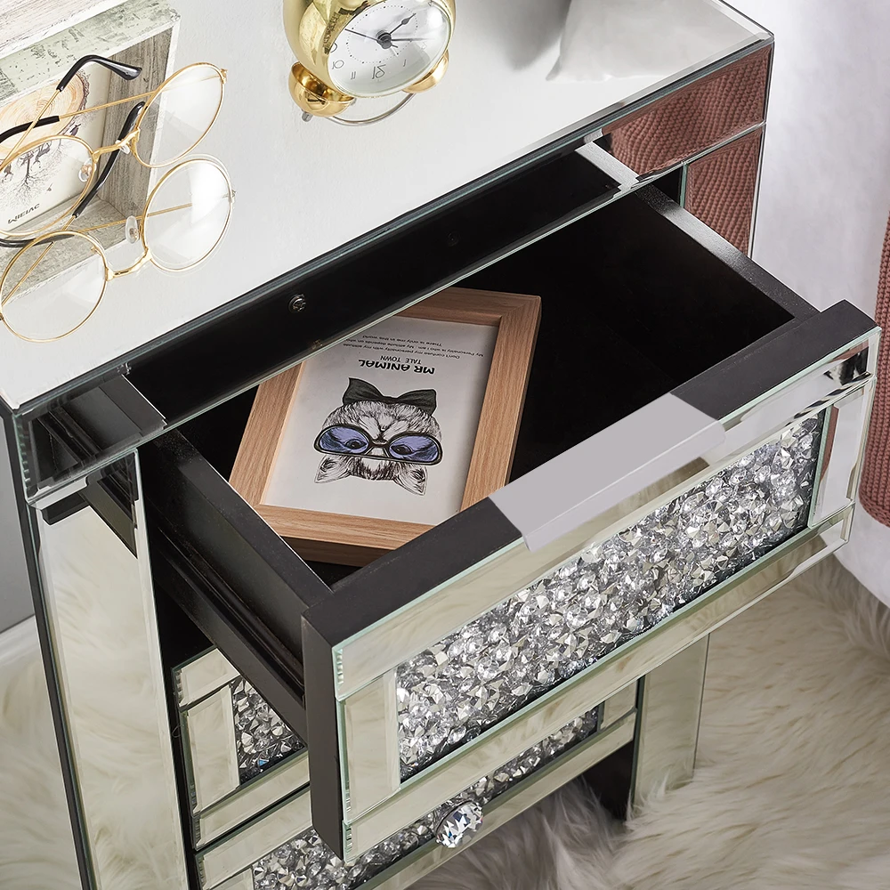 Title:Mirrored Crystal Glass Bedside Table 3 Drawer Bedroom Cabinet Nightstand