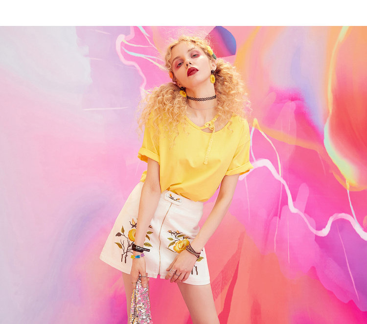 Женская плиссированная юбка Dower Me желтая мини в горошек с высокой талией и