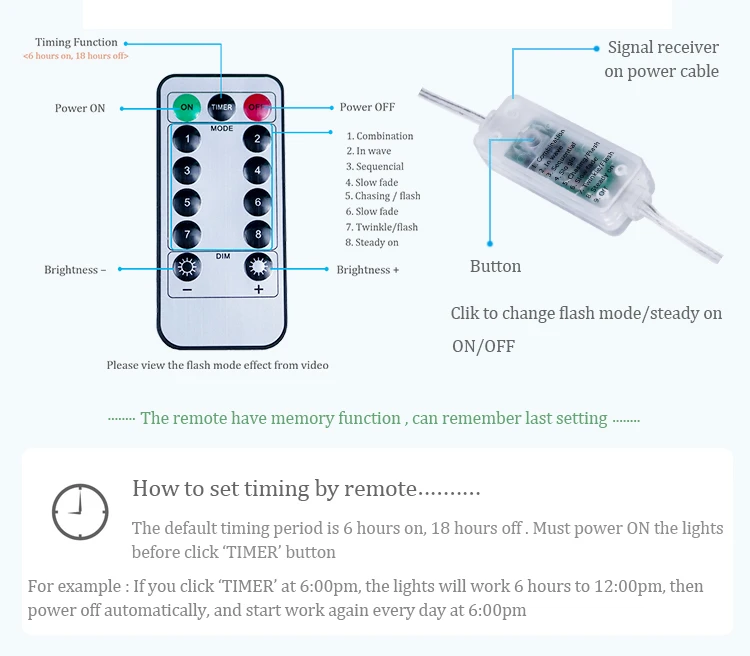 + Постоянное включение, изменение режима с помощью пульта ДУ или кабеля