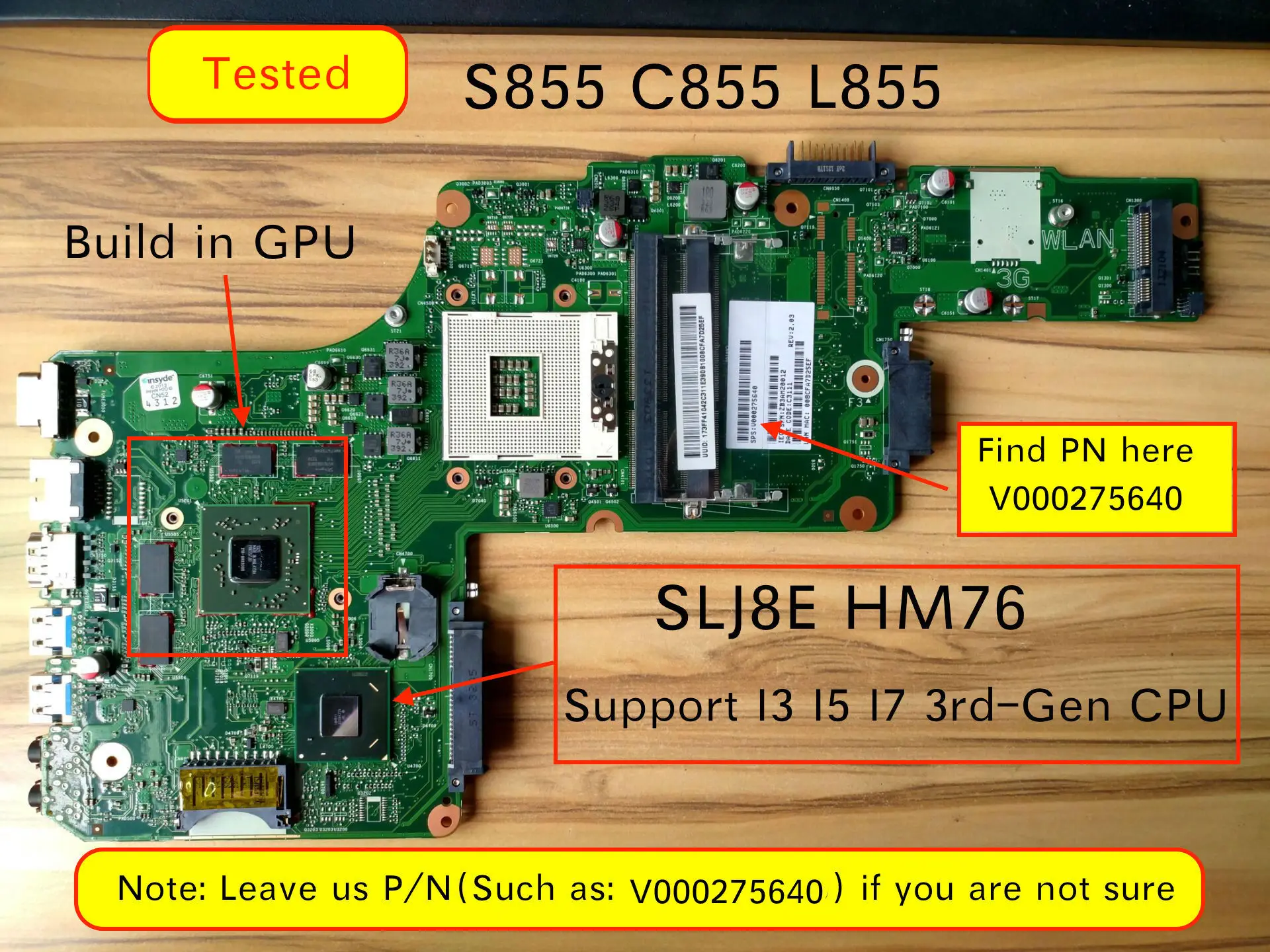 Встроенная Видеокарта: HD7670M Набор микросхем: hm76 поддержка 3rd-generation i3 i5 i7 процессор Примечание: Эта материнская плата имеет много номеров, но материнская плата такая же, Одна вещь, чтобы убедиться, что Чипсет: HM65 (поддержка 2-го поколения cpu I3 I5 I7) HM76 (поддержка 3-го поколения cpu I3 I5 I7) Если вы не уверены, пожалуйста, пришлите нам номер своей материнской платы рядом со слотом ram