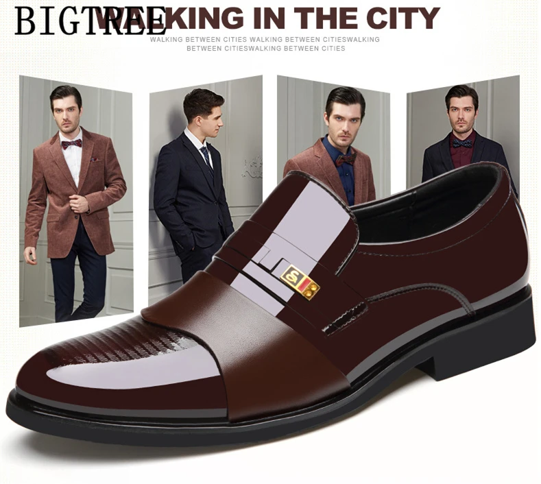 Классические кожаные туфли для мужчин модные деловые на плоской подошве без