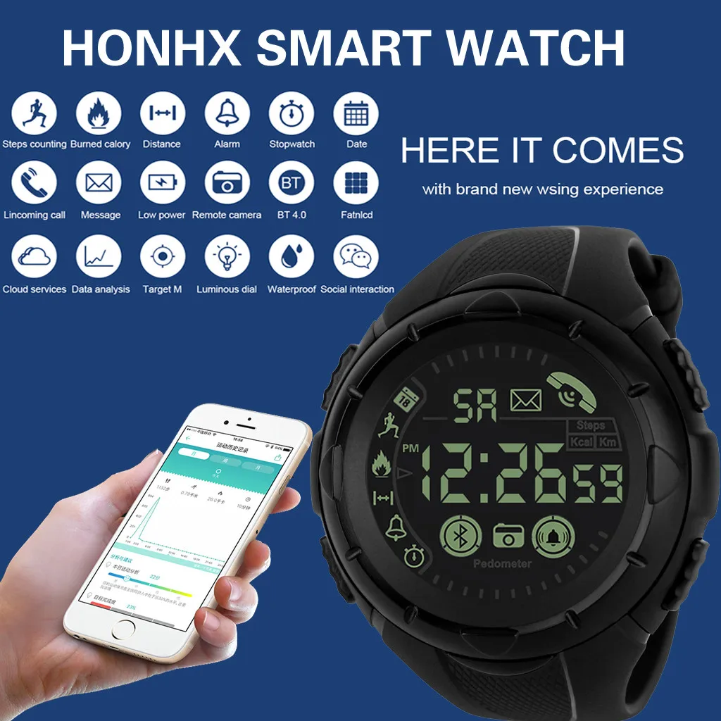 Модные мужские Смарт-часы Bluetooth цифровые спортивные наручные часы водонепроницаемые