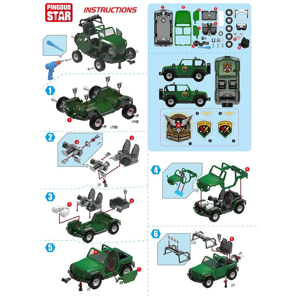 44 шт./компл. DIY Сборная модель Jeep Car Kit Детская дрель шурупы игрушки строительная