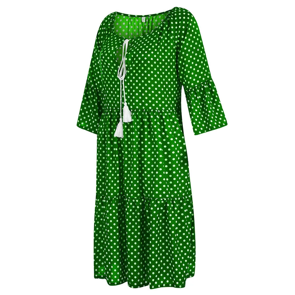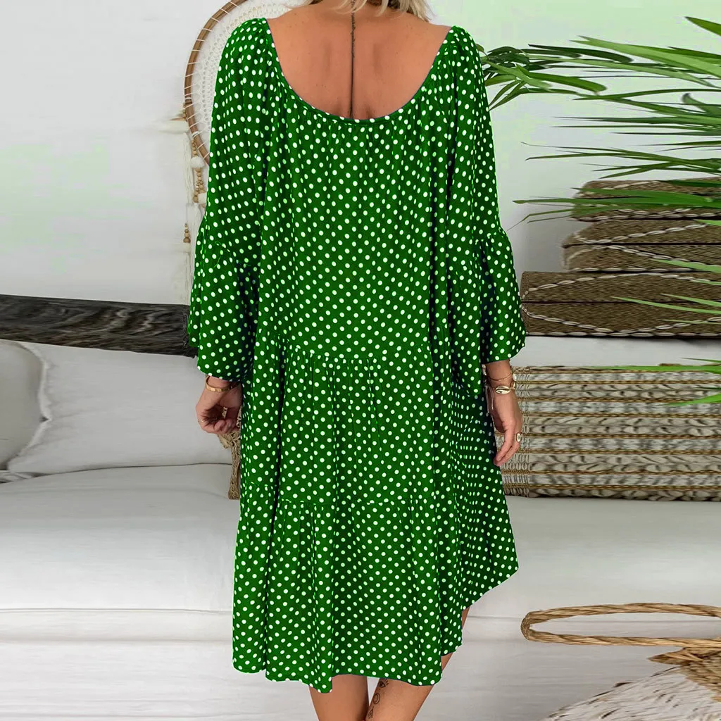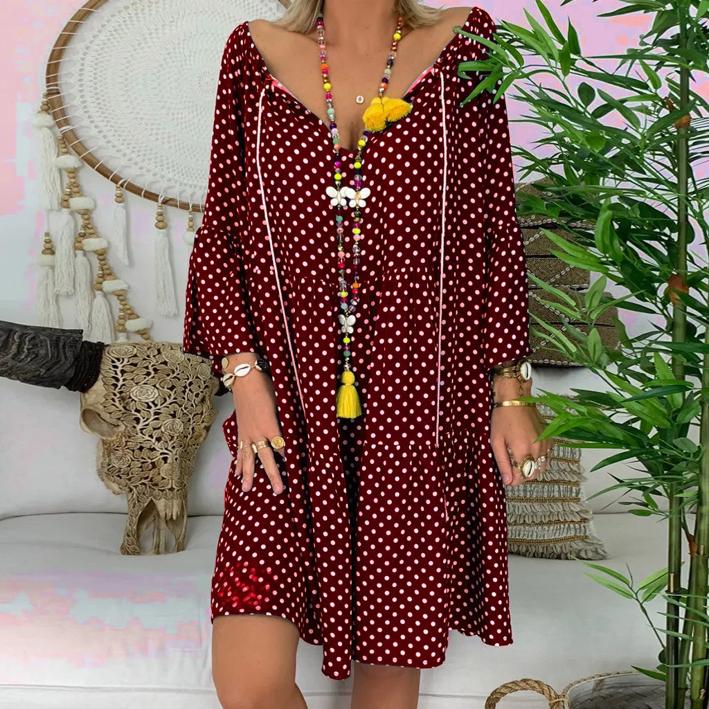Женское свободное мини-платье в горошек с рукавом три четверти, летнее платье