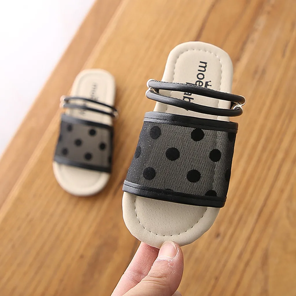 Children Kids Boys Girls Polka Dot Flat Slippers Back Strap Casual Shoes Sneakers