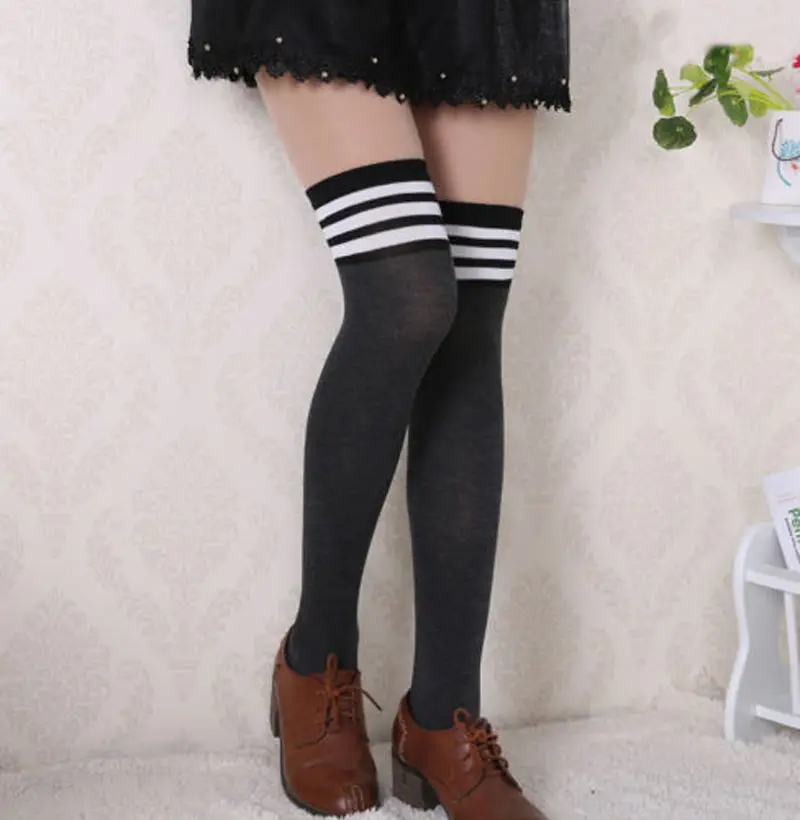 Модный дизайн, 100% новый бренд, высокое качество! Материалы: хлопок Толщина: Средний Количество: 1 пара Один размер: (подходит для Xs ~ L) Подходящая высота: 150-170 см Длина носков: 60 см (прибл.) Тип: длинные носки выше колен 4 цвета на выбор: черная полоса, белая полоса, синяя полоса, красная полоса Преобразование измерения: 1 см = 0,393 дюйма, 1 дюйм = 2,54 см