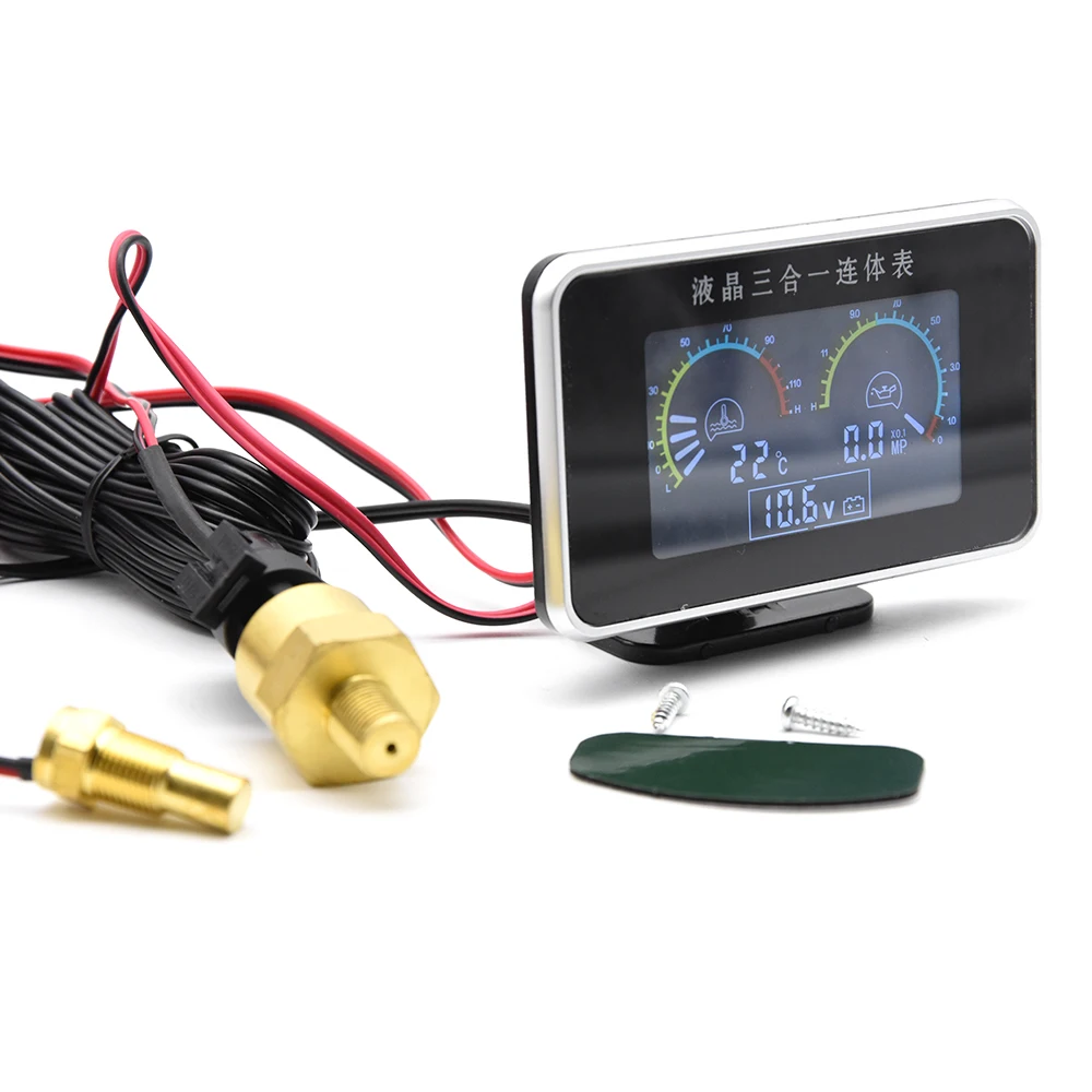 3 в 1 жидкокристаллический датчик давления масла для автомобиля, вольтметр, измеритель температуры воды + Датчик 10 мм 1/8 npt Универсальный 12 В 24 в авто