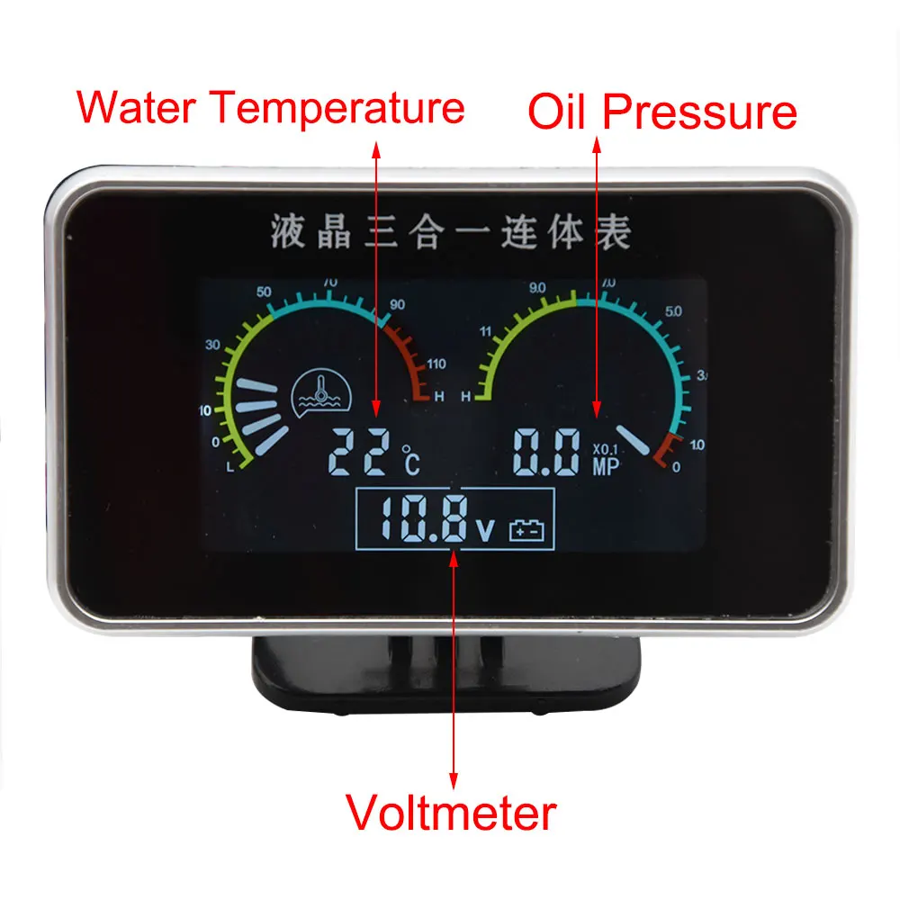 -Название: Автомобильный ЖК 3 в 1 Манометр (температура воды/давление масла/датчики напряжения)
