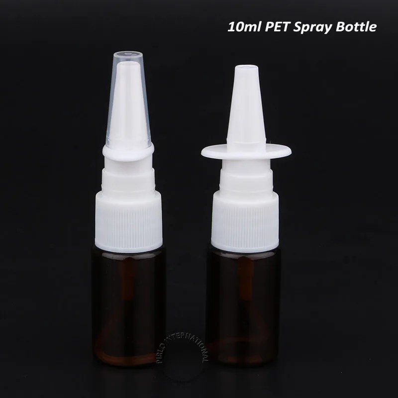 10cc пустые пластиковые носовые бутылки спрей насос ПЭТ бутылки 10 мл Янтарный нос фармацевтический распылитель 50 шт./лот