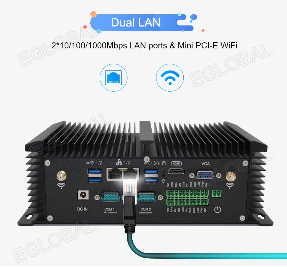 I5 8250U i7 7500U 2 * LAN Модель: 4 * USB3.0, 4 * USB2.0, 1 * HDMI, 1 * VGA, 2 * Lan, 6 * COM, 1 * GPIO, 1 * Слот для sim-карты