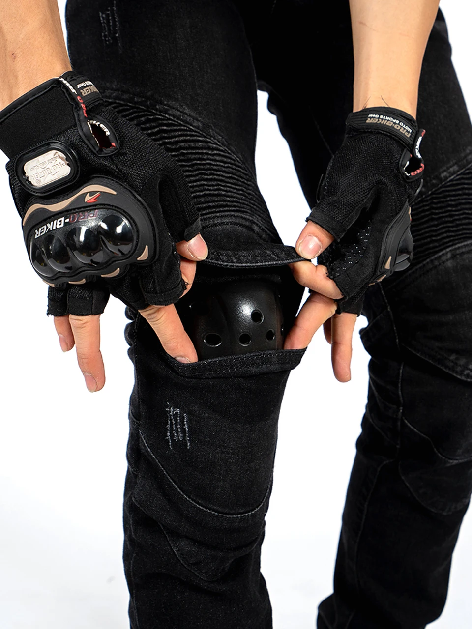 Привет-031 Новое прибытие 2021 лето, есть вентиляция молния на внешней бедре, вы можете открыть или закрыть их, когда вам нужно (дышащий). Добавлен Арамид (огнеупорный и пригодный для носки) для области колена.