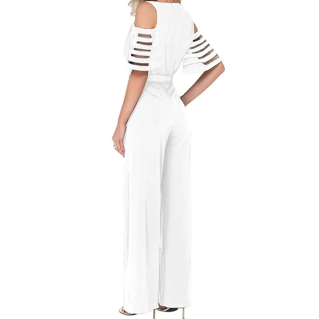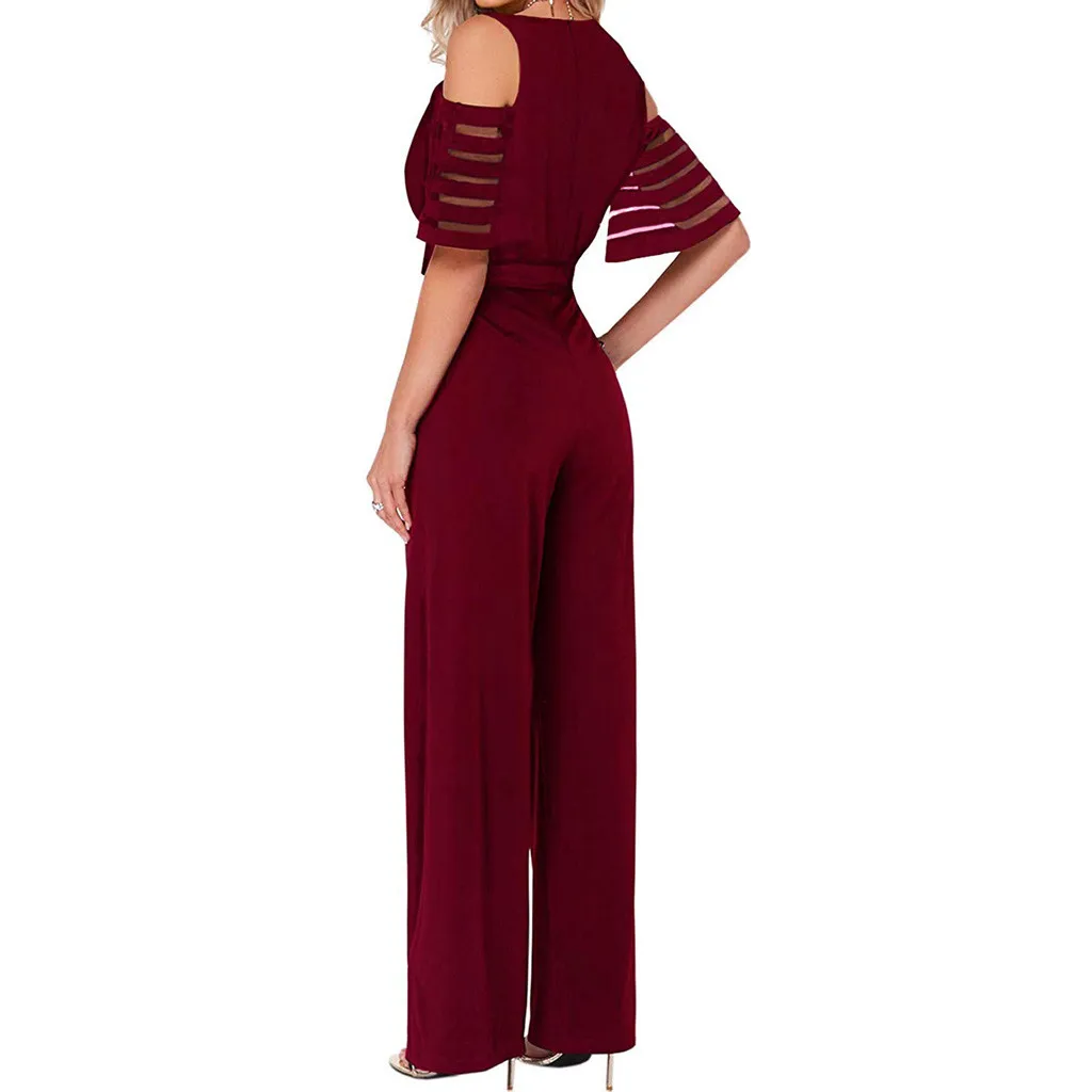 Женский комбинезон в стиле бохо с v-образным вырезом и длинными расклешенными рукавами