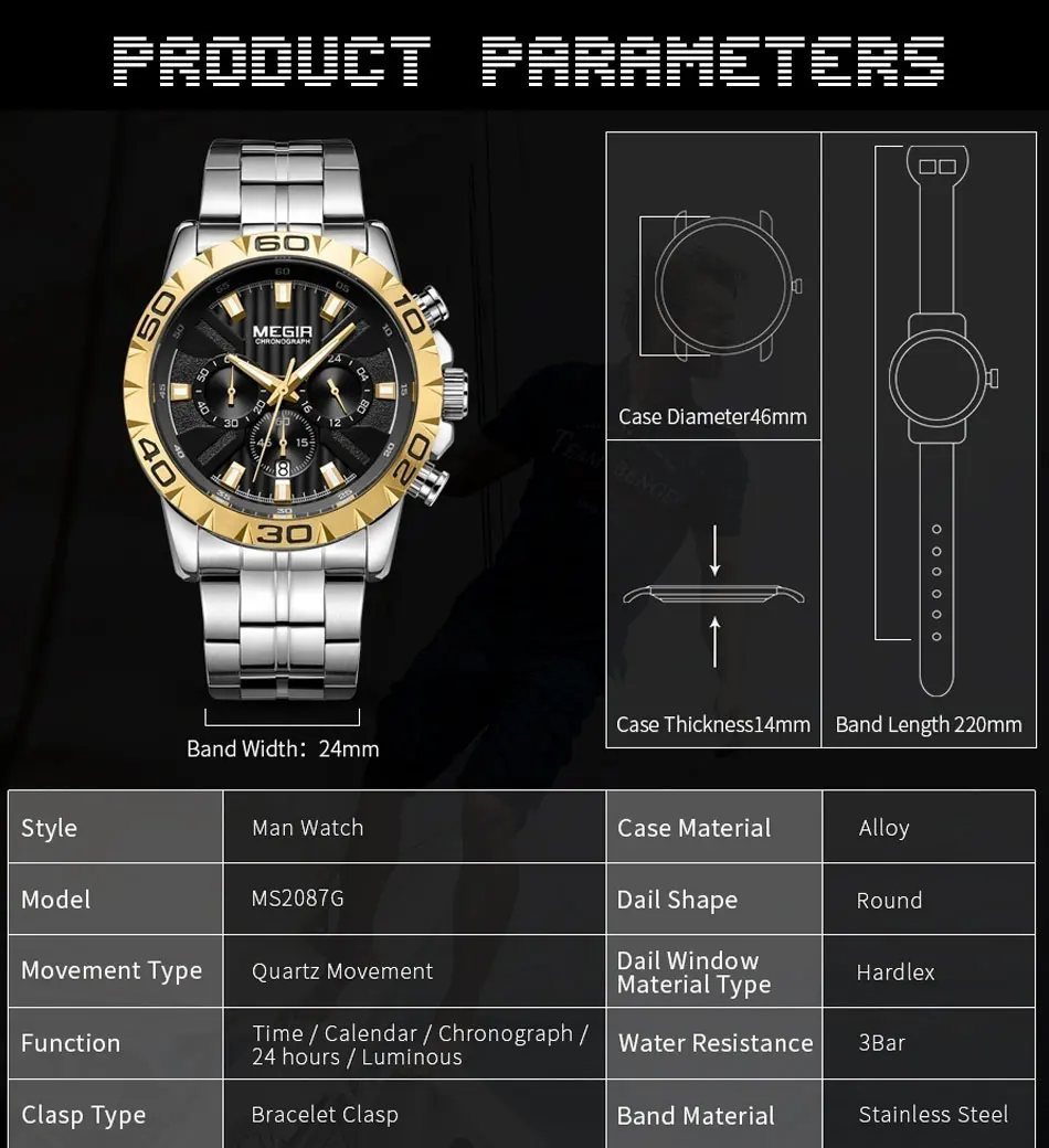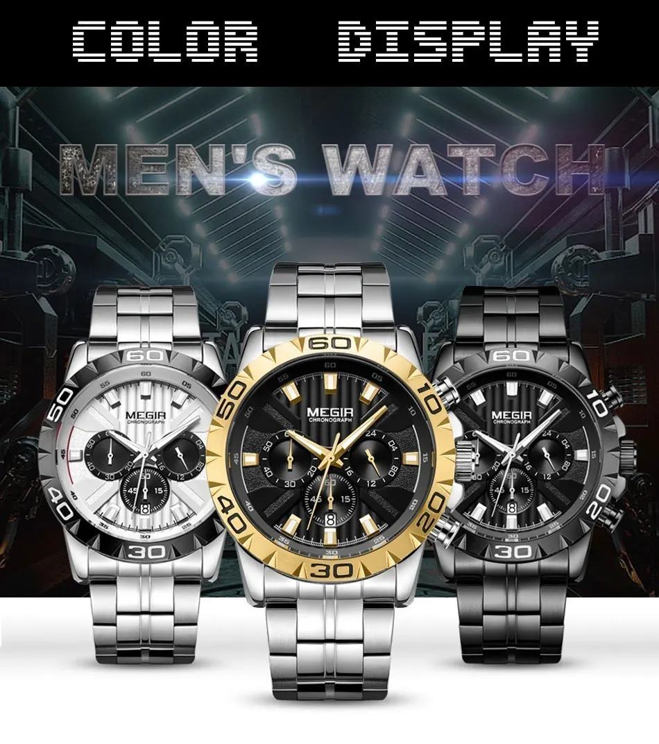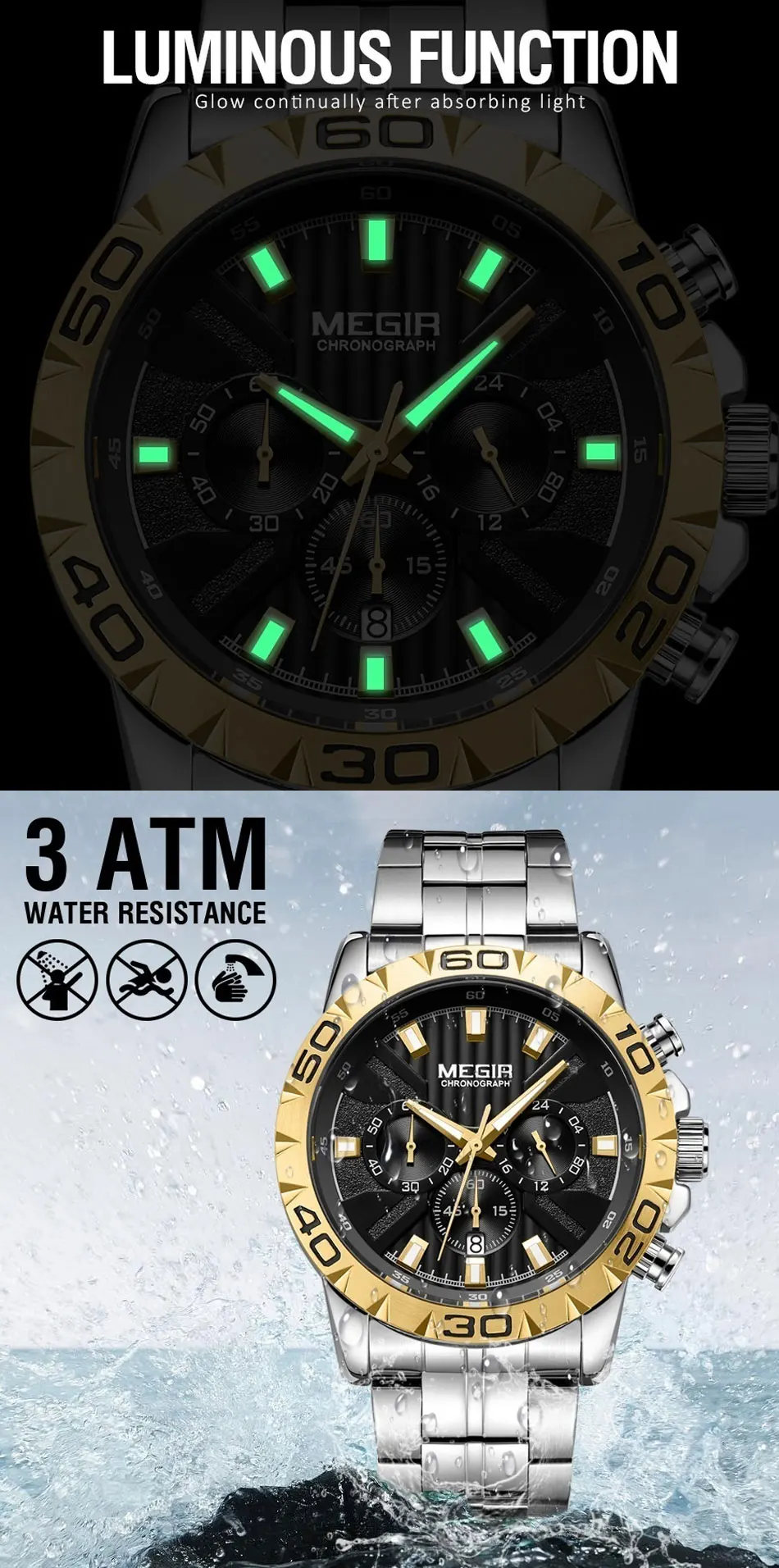 Новые золотые часы Megir, Мужские кварцевые часы с хронографом, бизнес Топ бренд, Роскошные Водонепроницаемые наручные часы, Relogio Masculino, подарок