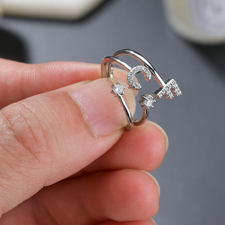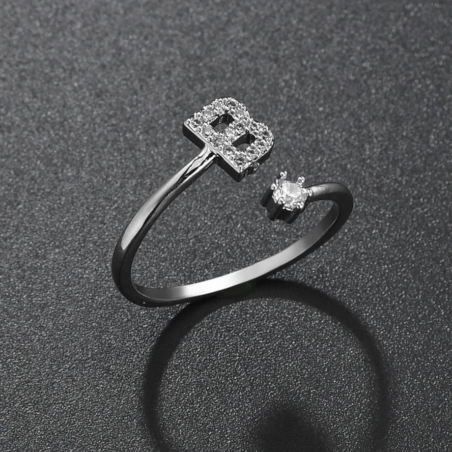 Простой классический стиль, кольцо из белого золота с буквенным цирконием, 26 букв, женское мужское кольцо, очаровательное кольцо, индивидуальное кольцо для пары, фамилия, кольцо