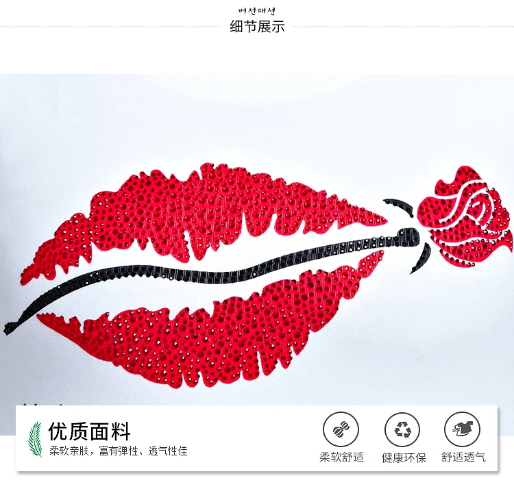 Новая летняя футболка Женская со стразами губы Роза со стразами футболки с коротким рукавом с круглым вырезом Топы повседневные тонкие хлопковые топы футболки Плюс Размер