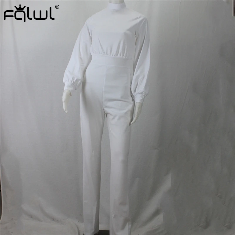 Женский комбинезон с широкими штанинами FQLWL, белый, черный облегающий комбинезон с длинным рукавом, лето 2019
