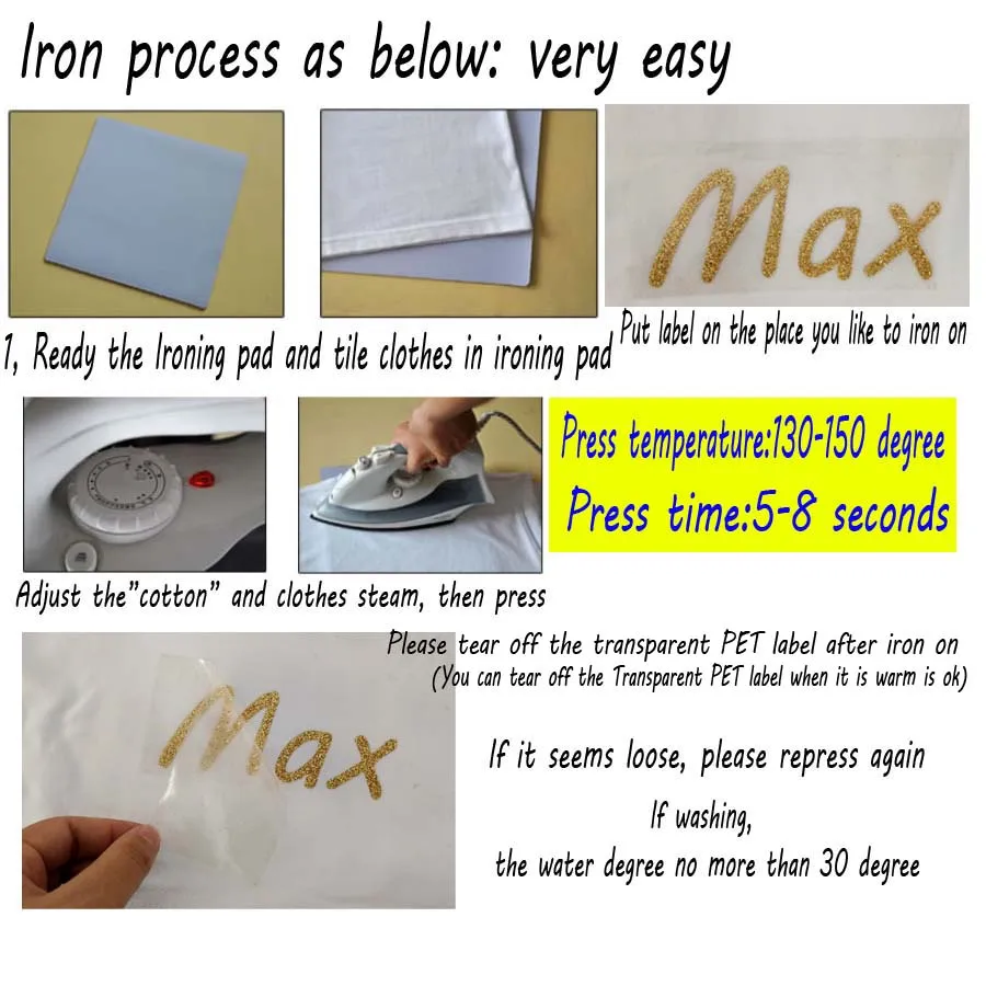 ------ Железные этикетки легко гладить на различных продуктах, таких как футболки/сумки/Обувь/носки и так далее.