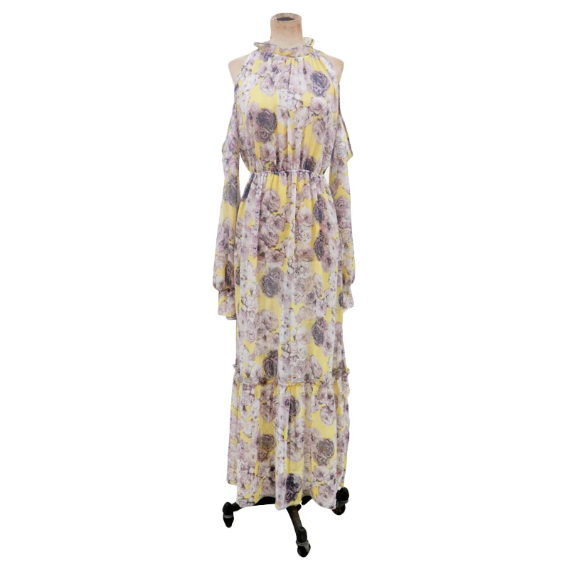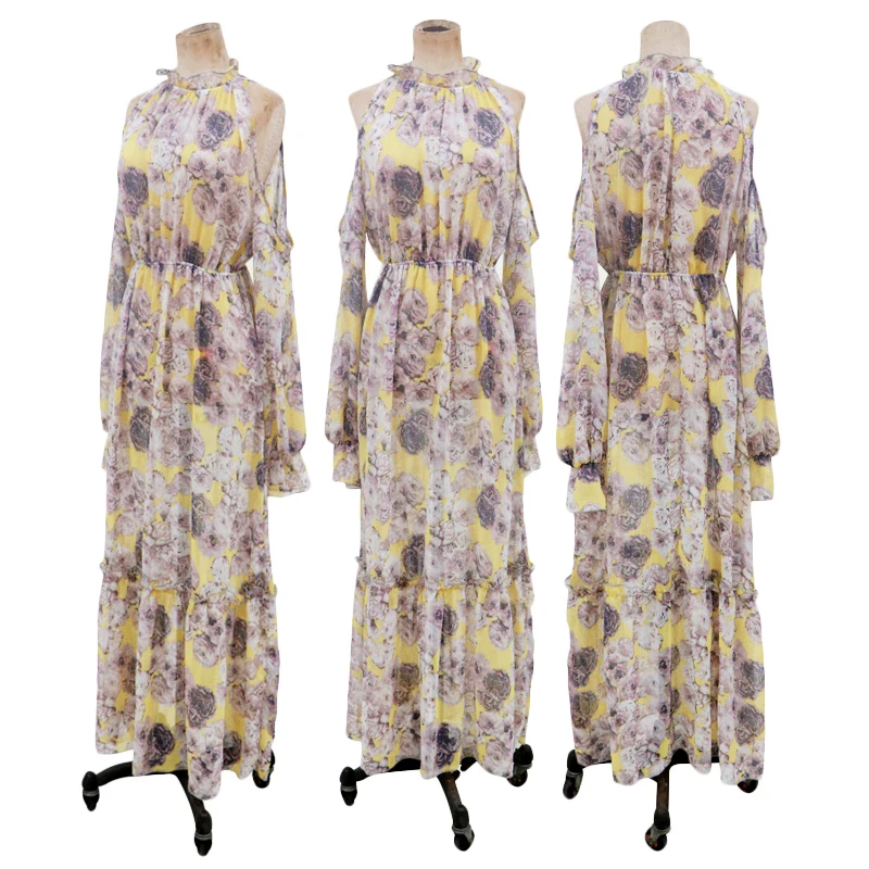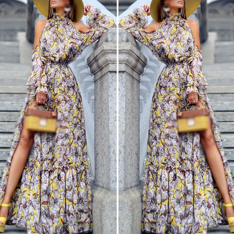 * Описание товара:Длинное платье макси, платье с разрезом, длинный рукав, цветочный принт, холодное плечо