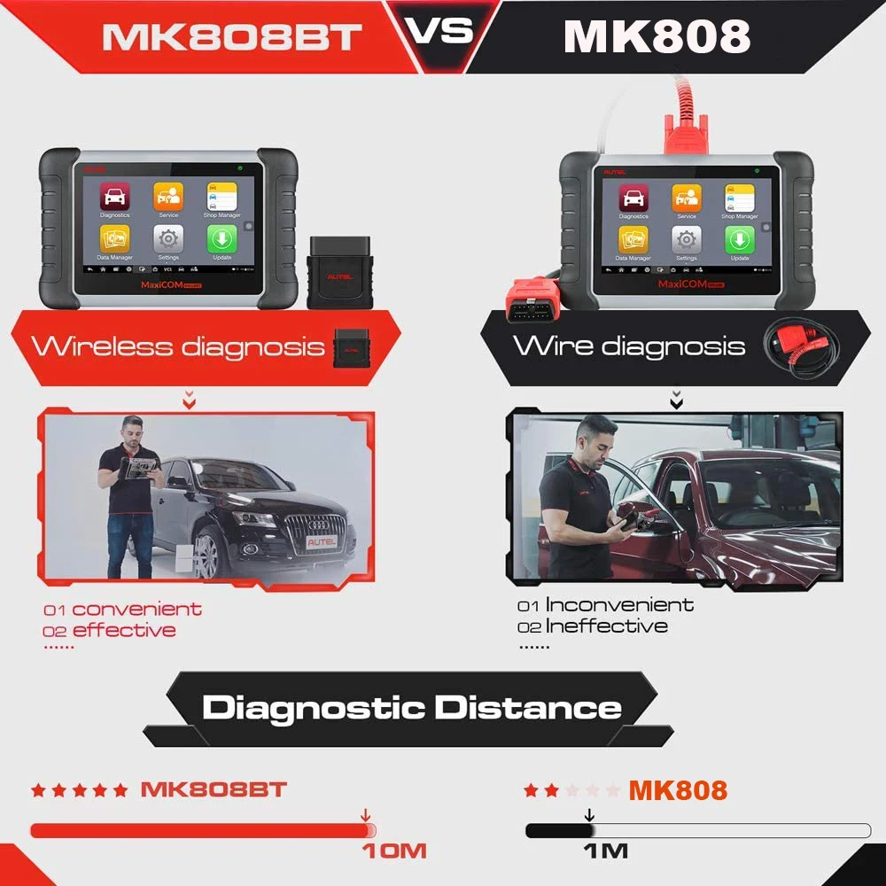 Версия Bluetooth MK808. Благодаря мощной Cortex-A9 процессор, а также 7,0 дюймов ЖК-дисплей емкостный сенсорный экран, на базе Android многозадачность операционная система, И в сочетании с возможностью быстрого чтения и очистки DTCs для всех доступных модулей большинства марок и моделей на рынке, MaxiCOM MK808BT-это ваш идеальный инструмент для автоматической диагностики и обслуживания. MK808BT предоставляет вам превосходные специальные функции, включая сброс масла, EPB (электронный стояночный тормоз), SAS (датчик угла поворота руля), BMS (система управления батареей), И DPF (Дизельный сажевый фильтр).