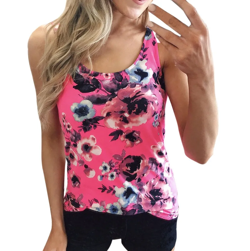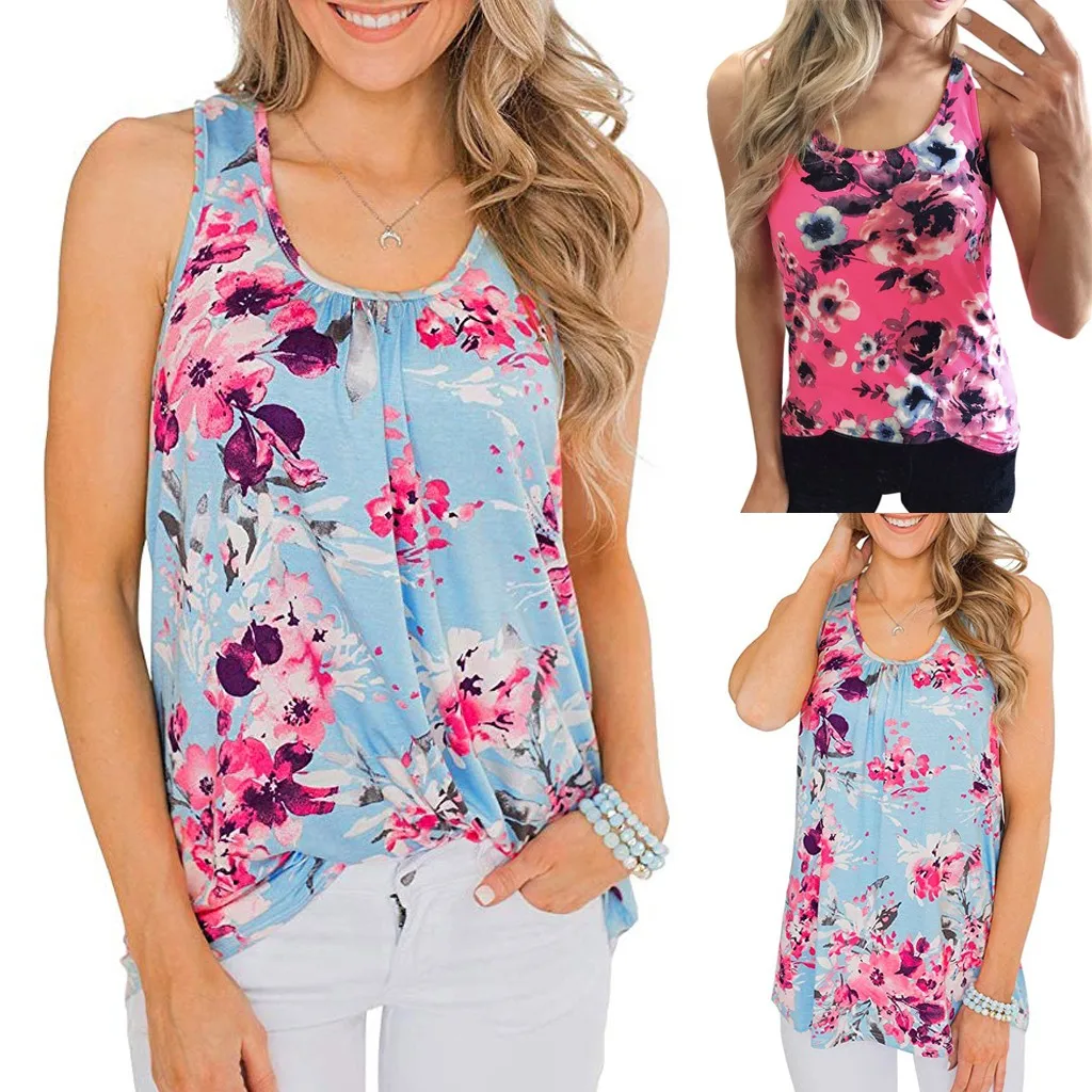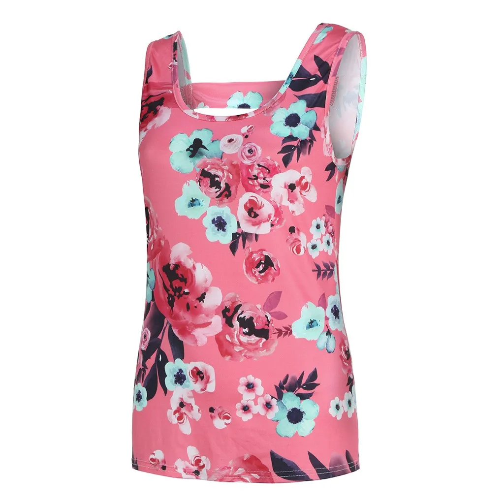 Женские Летние повседневные топы без рукавов с цветочным принтом, футболки с круглым вырезом на спине