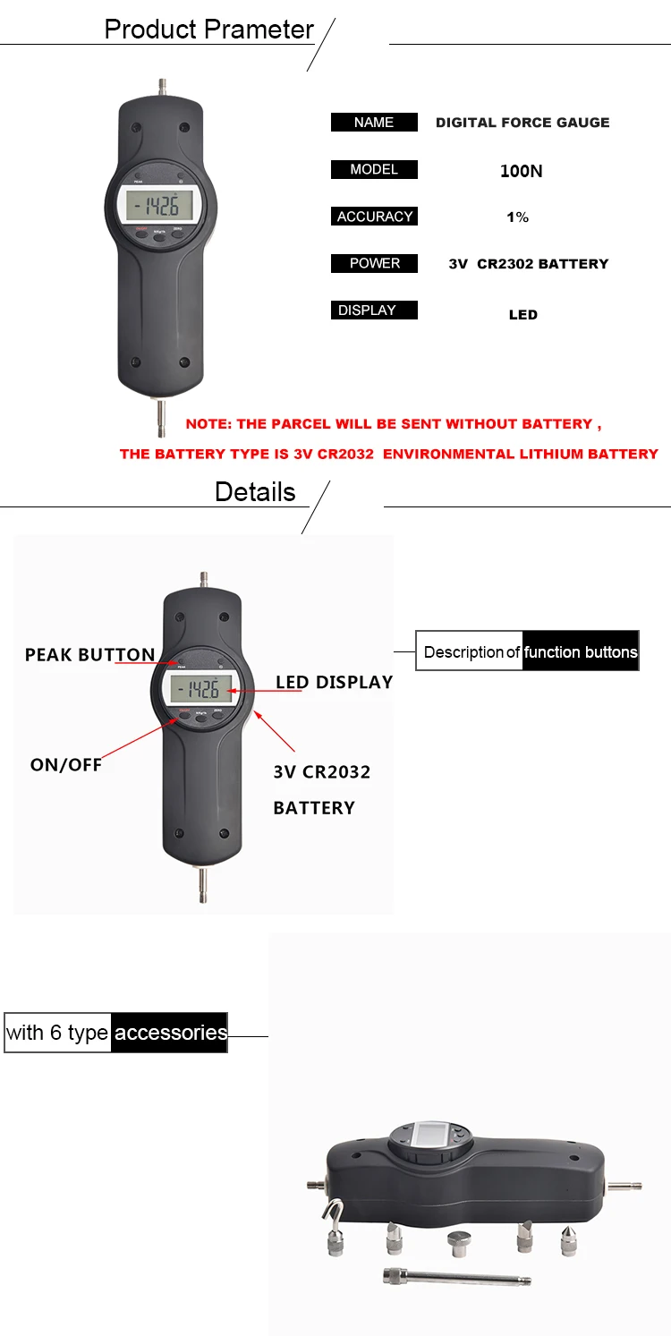 1 шт. 100N цифровой датчик силы 6 зажимов 1pc Пластиковый Чехол