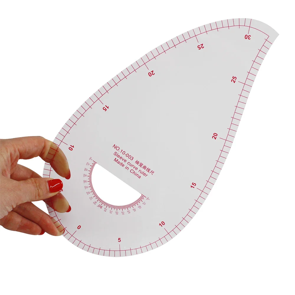 Название: многофункциональная линейка рукавов Мягкий материал встроенные весы Длина: около 15,4 см Вес: 37,5 г Масштаб: 2х30 см Толщина: около 1 мм Функциональное описание: линейка из прозрачного материала, широко известная как линейка персика, с 180 метрическим angler, установите круг от 0 до 150 мм. Он используется для изготовления швейных пластин, чтобы нарисовать различные изгибы, такие как пуговицы/карманы. Это один из часто используемых инструментов для модного дизайна.